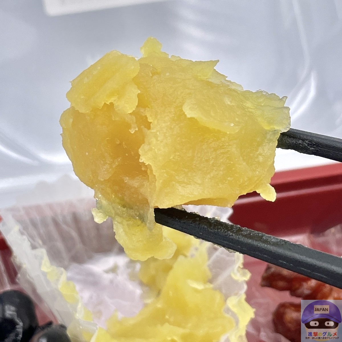 栗きんとんは、ほっくりした栗の食感で鹿児島県産「べにはるか」を使用した濃い甘みが良いです。