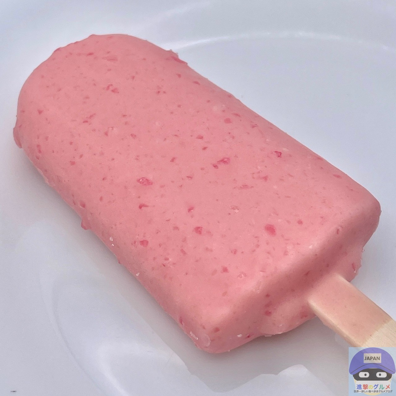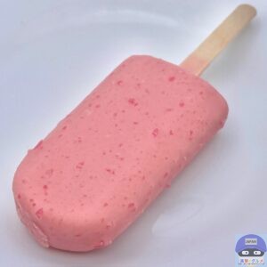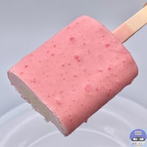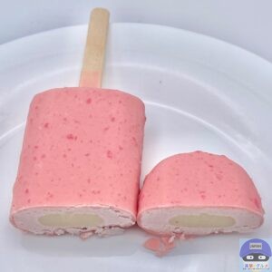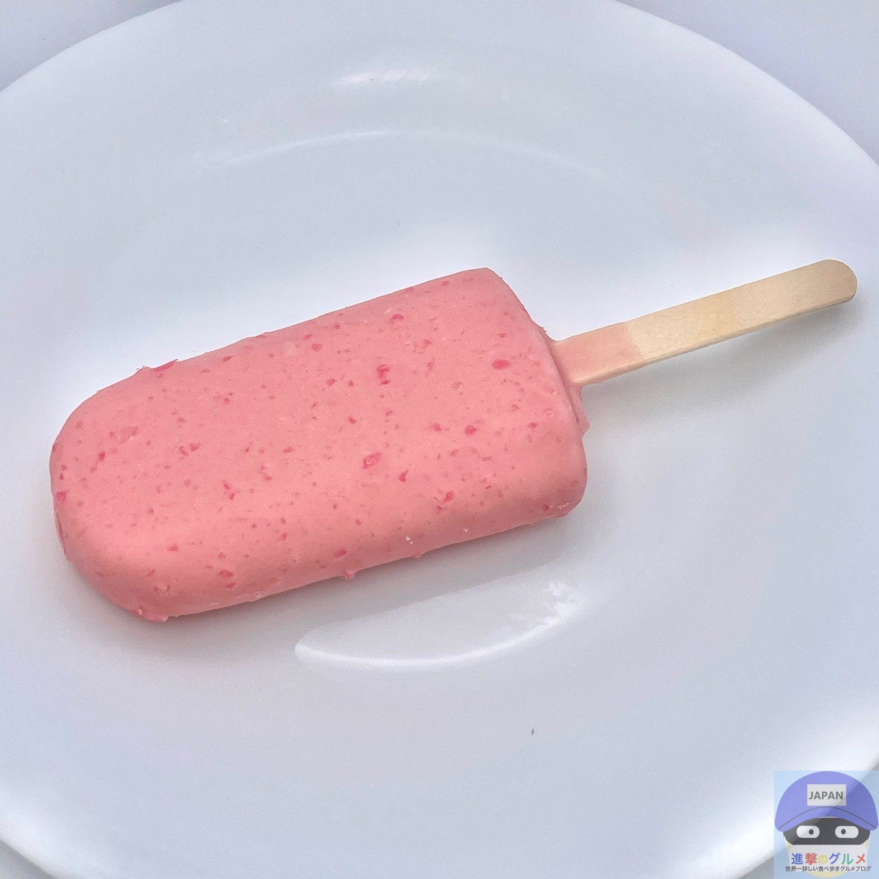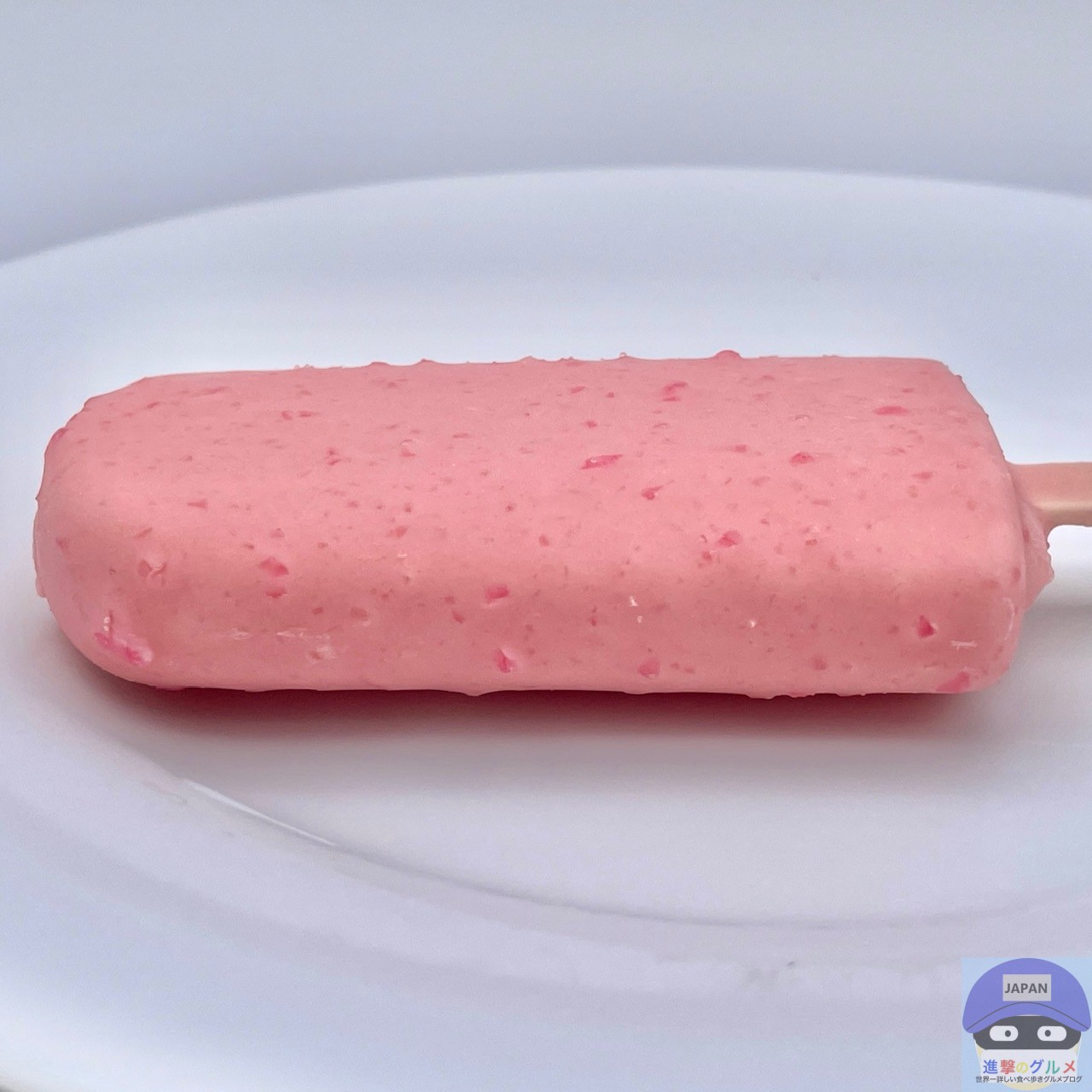 開封すると、ピンク色でかわいらしい見た目のアイスバーです。