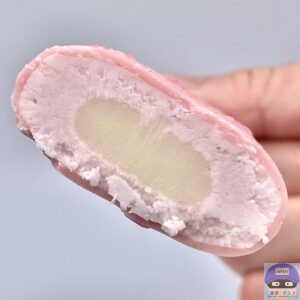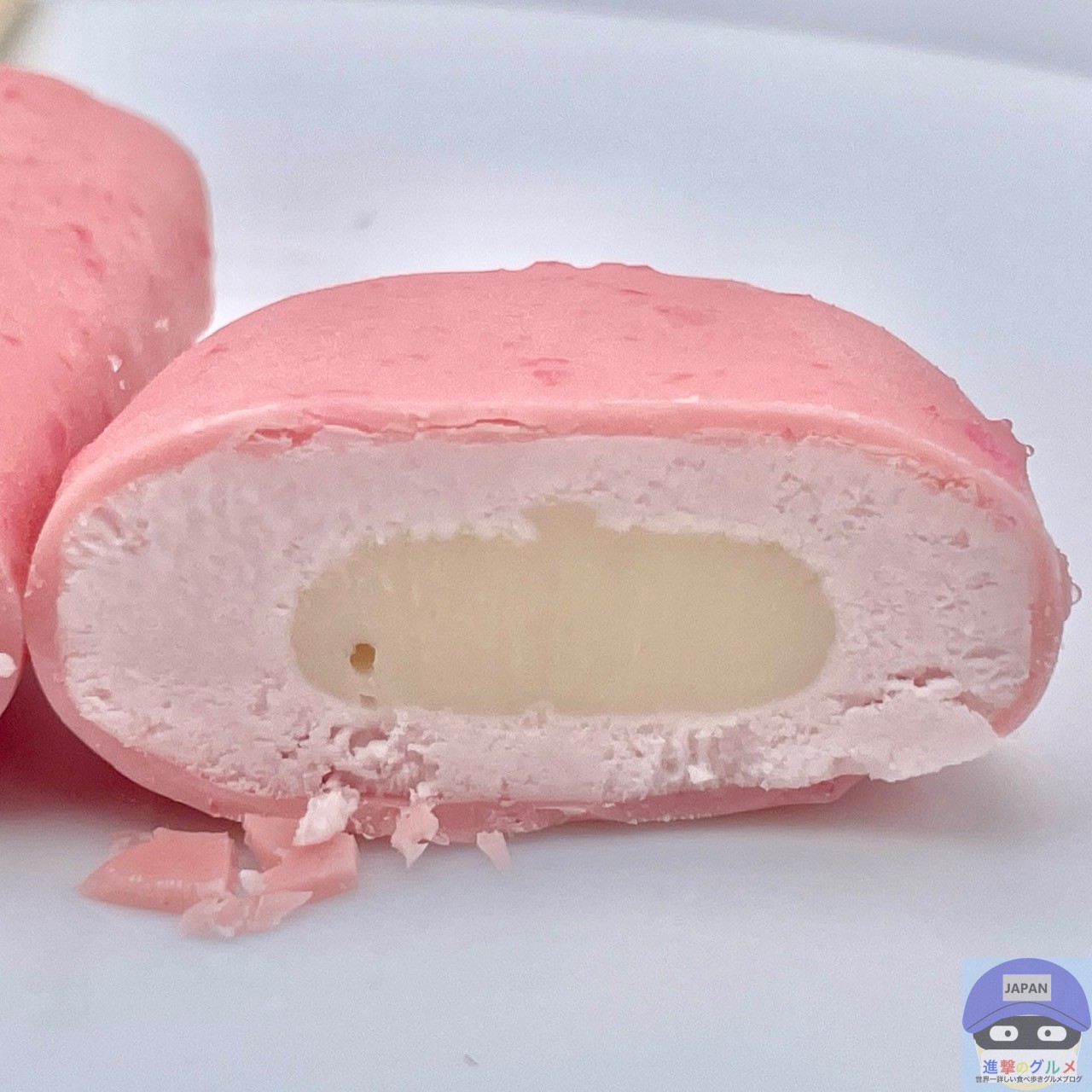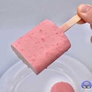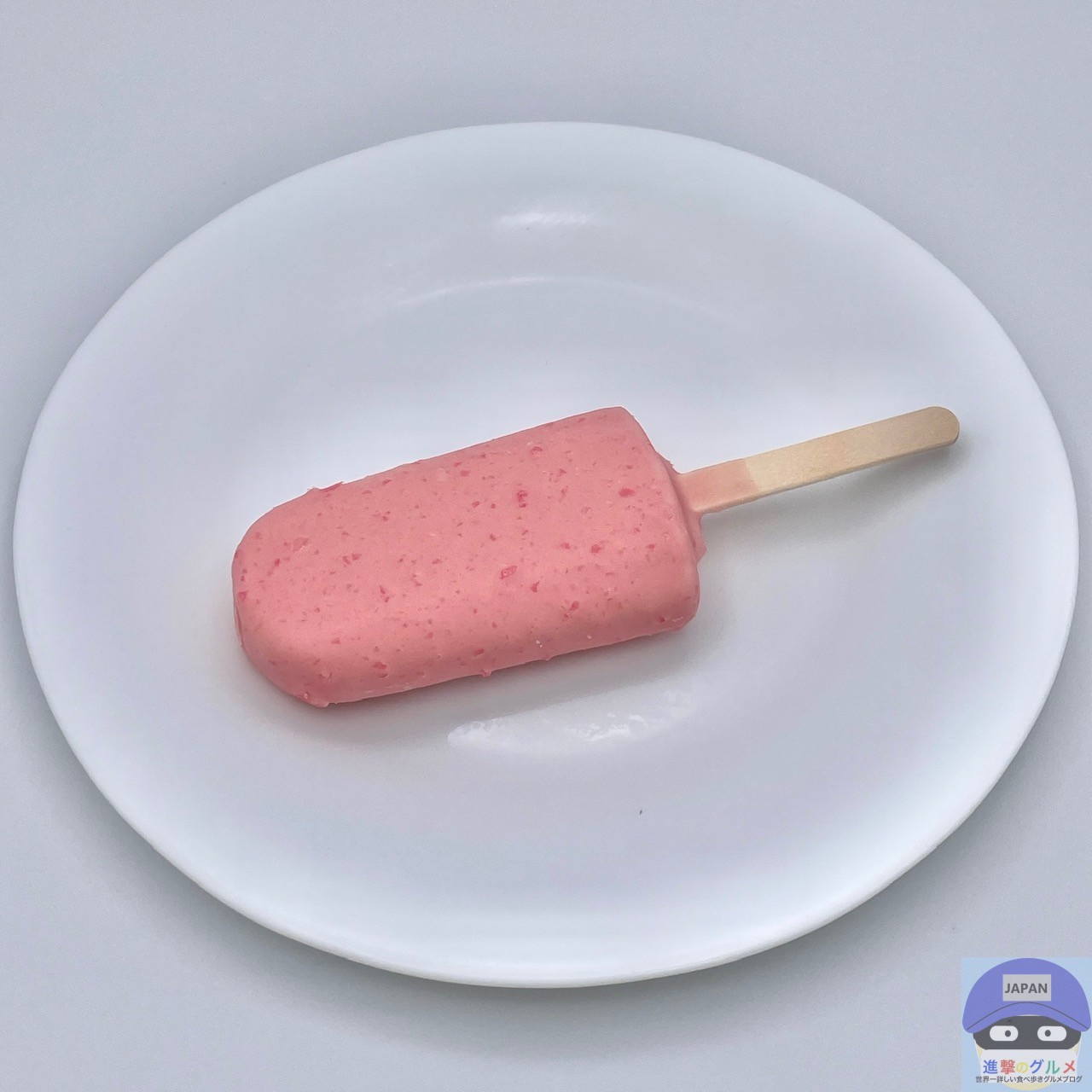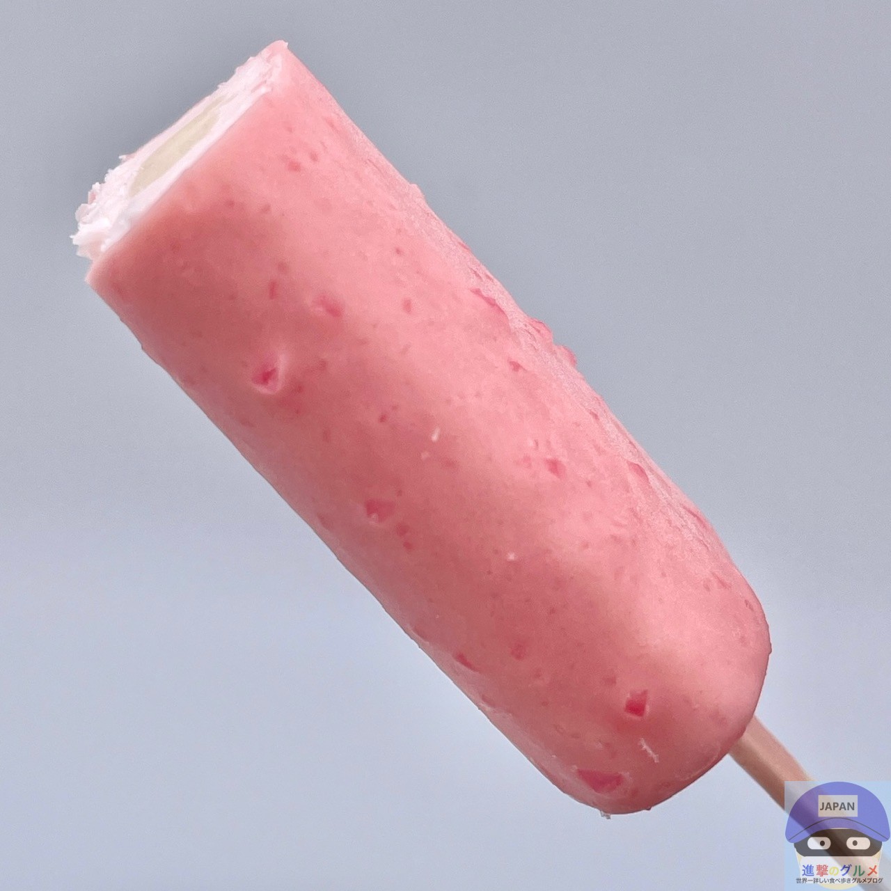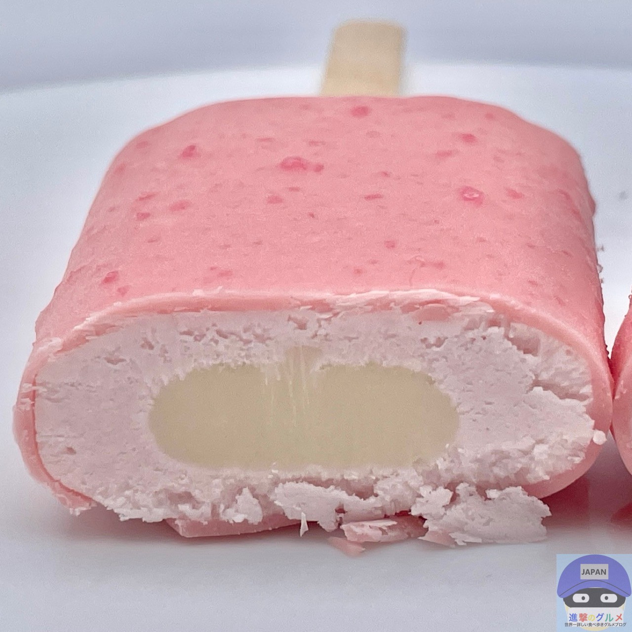 開封すると、ピンク色でかわいらしい見た目のアイスバーです。