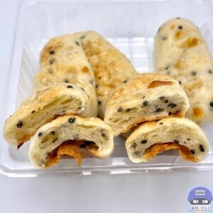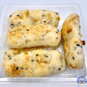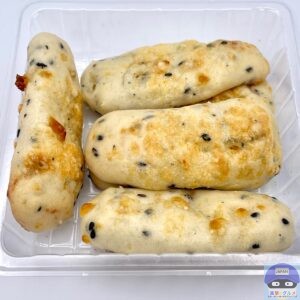 チーズと黒ごまの風味を味わえる、もちもち食感のスティックパン、5本入りのコンビニ菓子パンです。