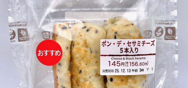 2025年12月9日、セブンイレブンが新作菓子パン「ポン・デ・セサミチーズ 5本入り(156円)」を発売しました。