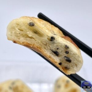 少しもっちりした生地の味わい、チーズの旨み、黒ごまの食感と風味を感じます。
