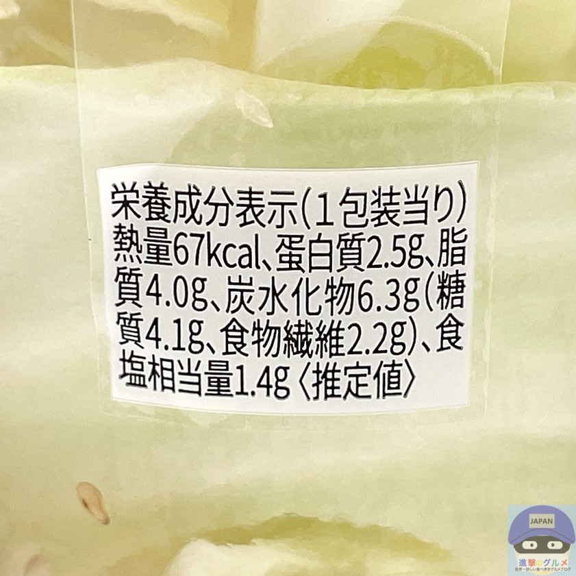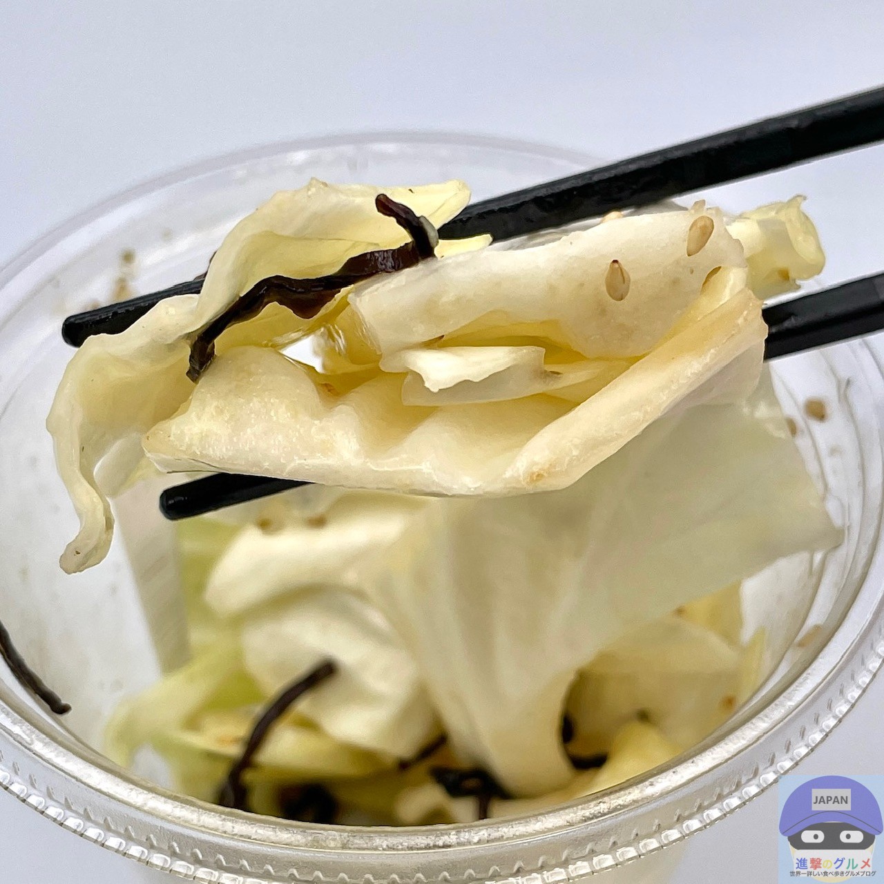 キャベツの芯の部分も入って居酒屋で食べるクオリティ、お酒のおつまみにぴったり、コンビニで213円で買えるのは嬉しいです。