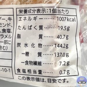 カロリーは1007kcal、重さは包装を含めて272gです。