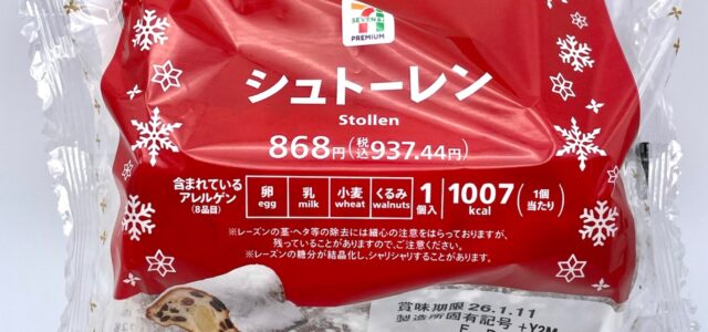 2025年12月22日、セブンイレブンが新作菓子パン「セブンプレミアム シュトーレン(937円)」を発売しました。