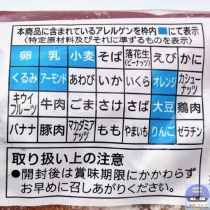 アレルギー物質表示、原材料名、栄養成分表示などです。