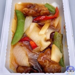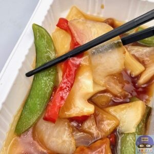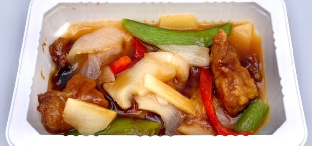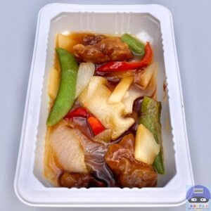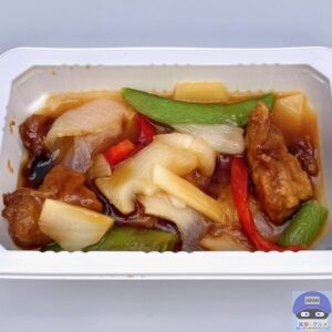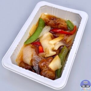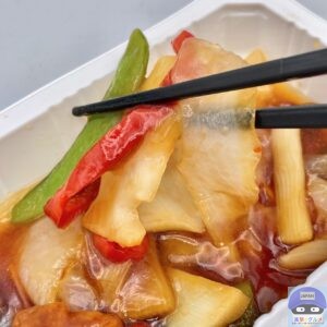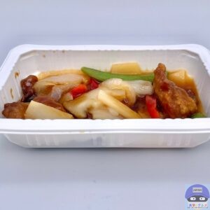 電子レンジで温めて開封すると、酢豚の酸味ある良い香りが食欲をそそります。