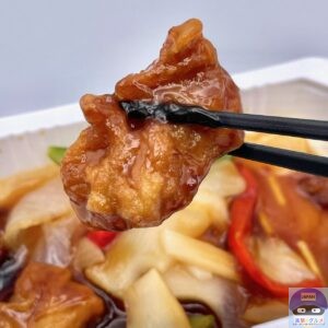 豚肉と野菜を、まろやかな酸味と濃厚な旨味の香醋(香酢・こうず)あんで仕立てた中華惣菜です。