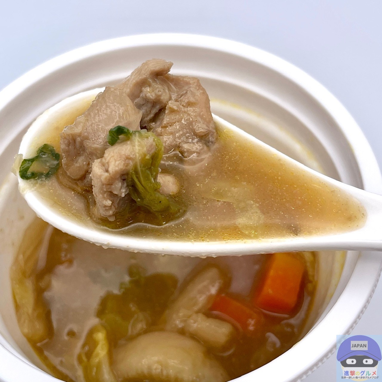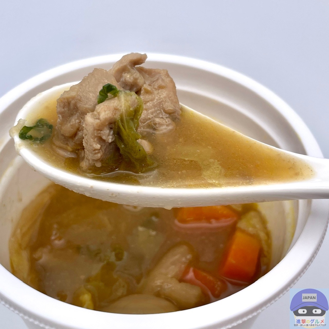 具だくさんのご当地スープ、醤油の良い香りがします。