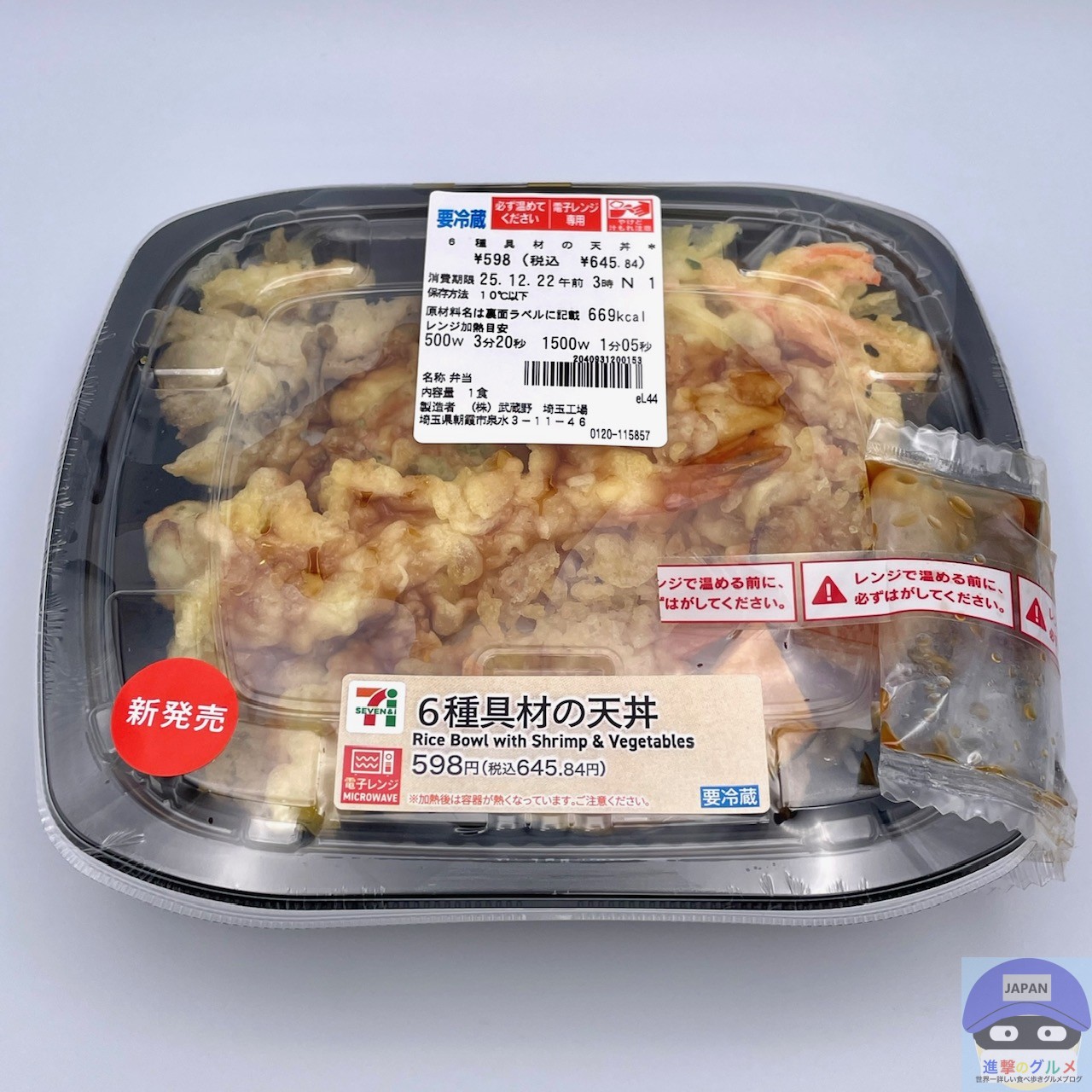 2025年12月16日、セブンイレブンが新作弁当「6種具材の天丼(645円)」を発売しました。