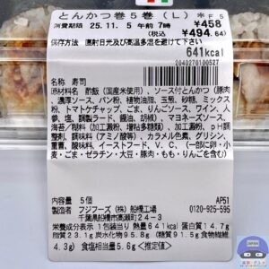2025年11月4日、セブンイレブンが新作弁当「とんかつ巻 5巻(494円)」を発売しました。