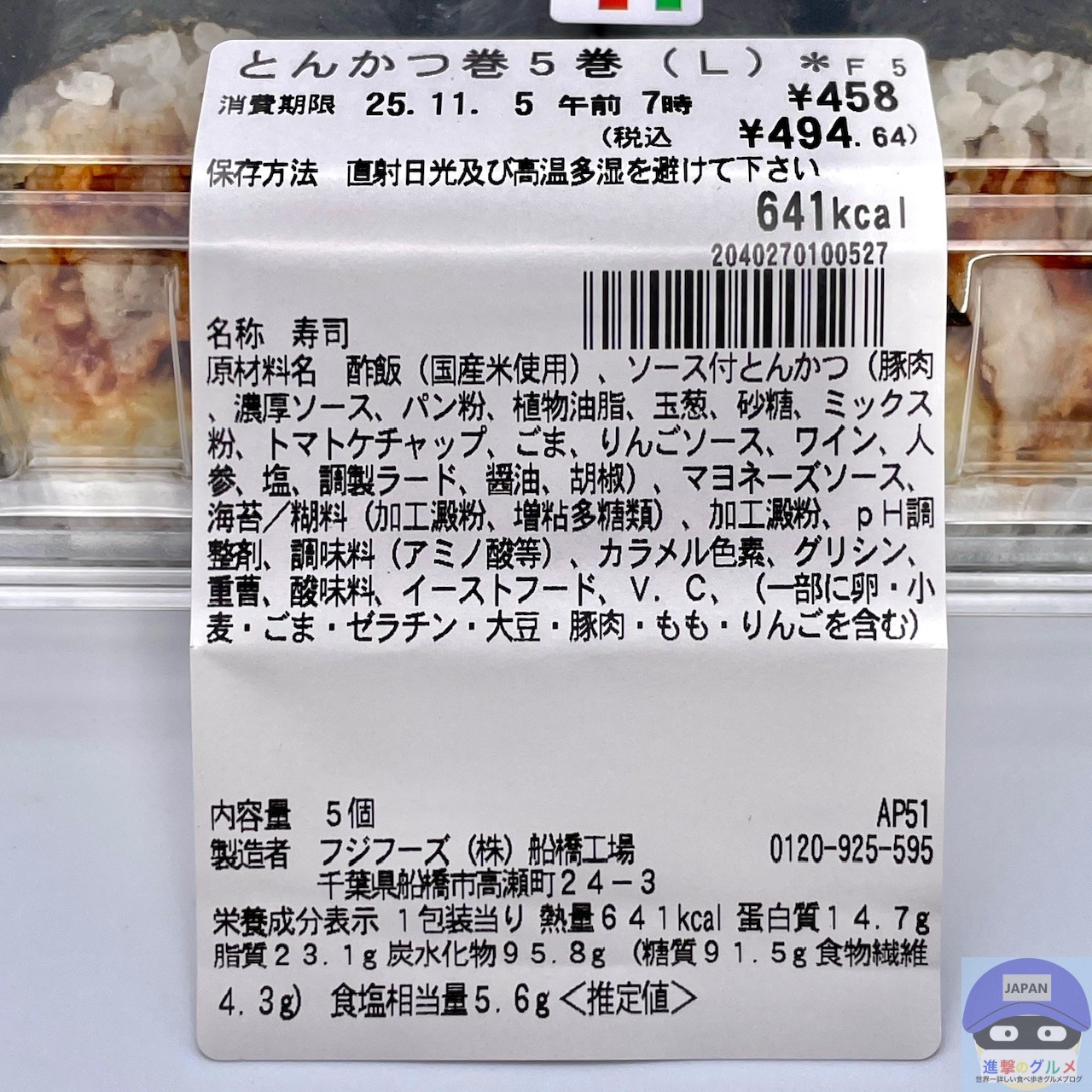 【セブンイレブン】とんかつ巻 5巻【新作コンビニ寿司】