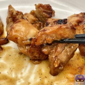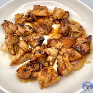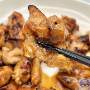 やわらかい肉質でジューシー、鶏もも肉の旨みと皮の部分の甘みを感じ、炭火焼きの香ばしさとほろ苦さも良いです。