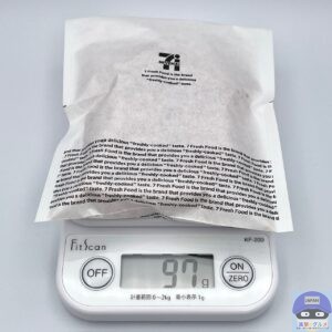 カロリーは218kcal、重さは包装を含めて97gです。