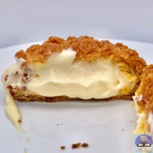 ザクザクと香ばしい硬めのココナッツシュー生地で、とろりとしたカスタードクリームのほんのりココナッツ香る風味よい甘さが広がります。