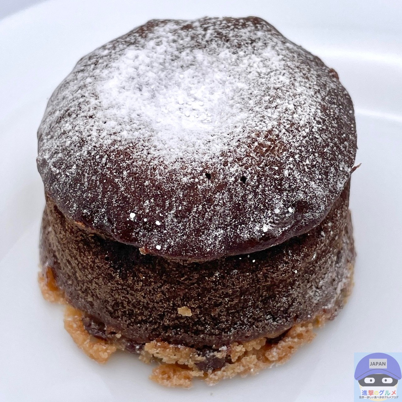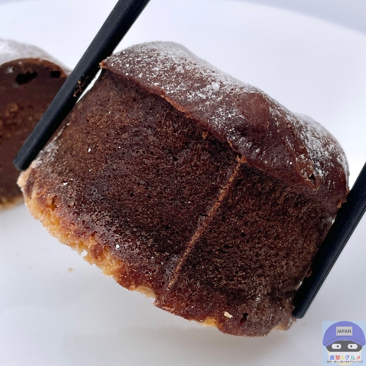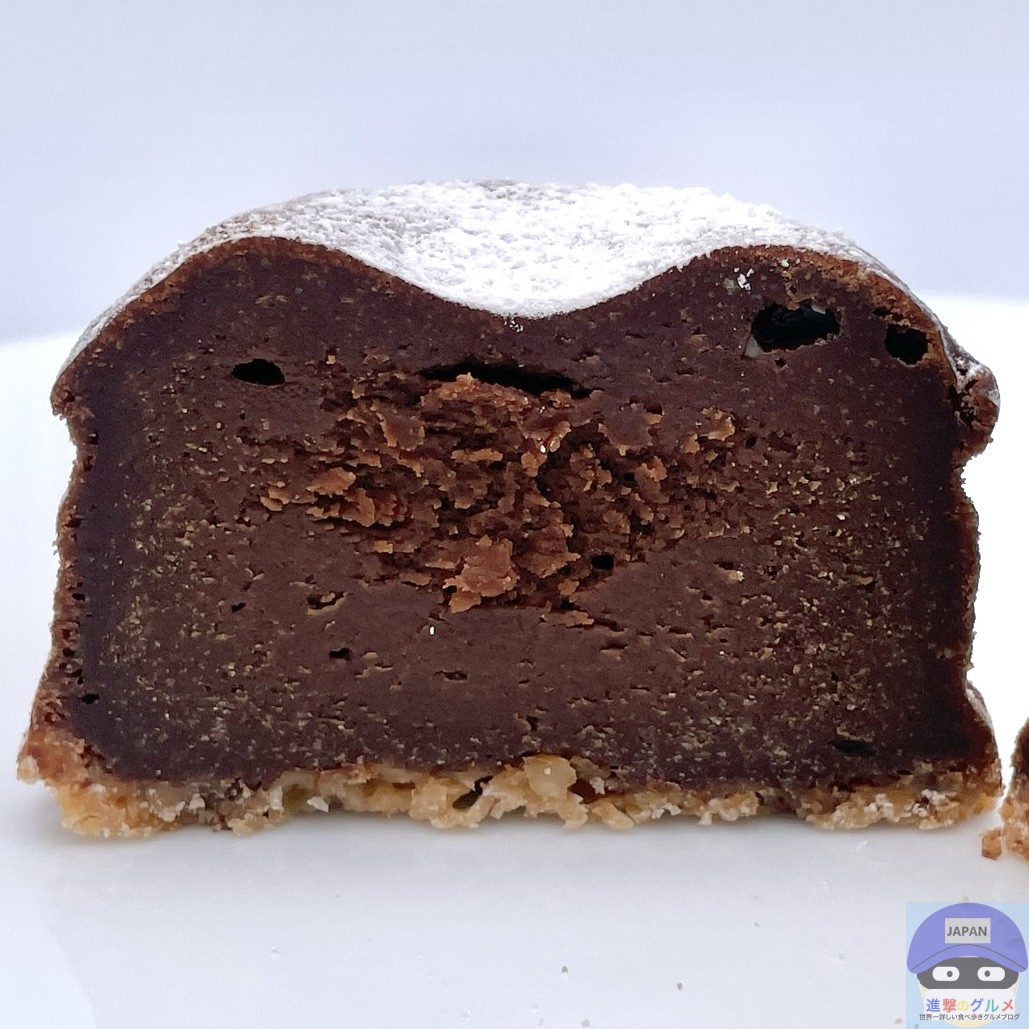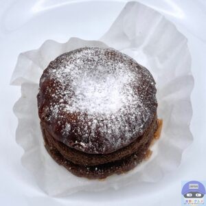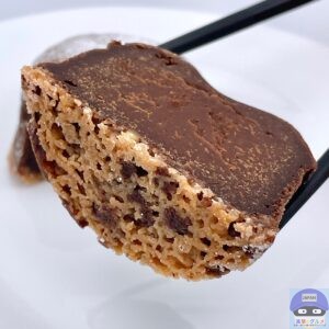 ややふんわりしっとり、チョコ味のスポンジ生地のような食感と味わい、カリカリした底面がアクセントです。