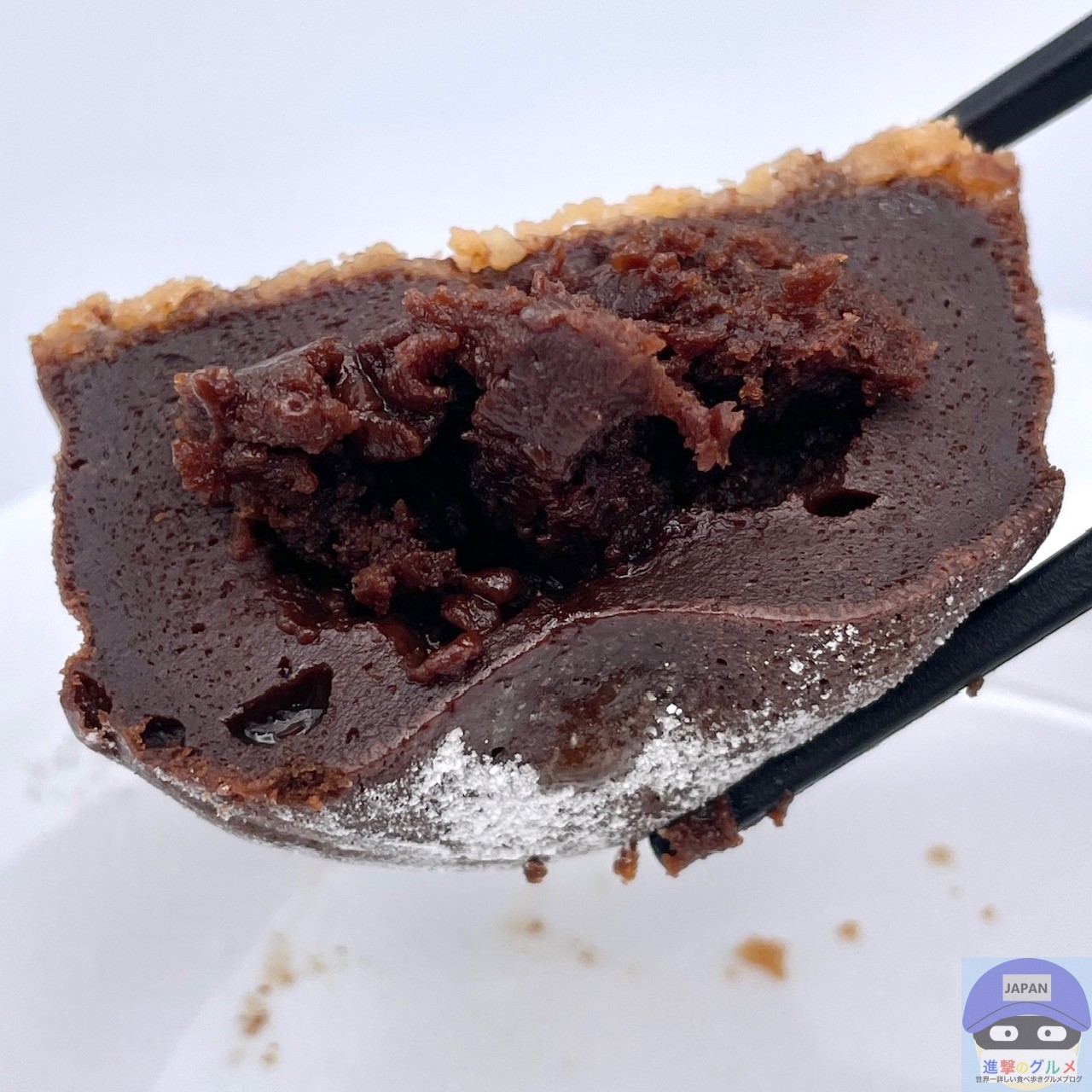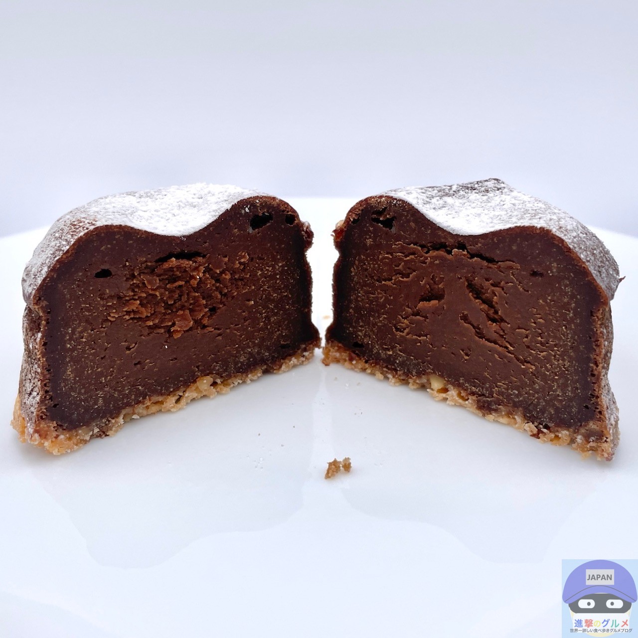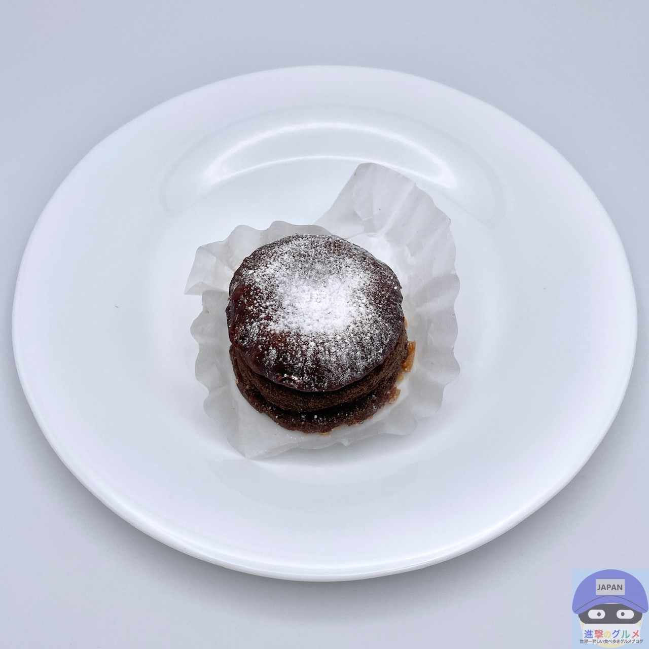 ややふんわりしっとり、チョコ味のスポンジ生地のような食感と味わい、カリカリした底面がアクセントです。
