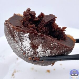チョコレートやバターなどを使用し、底面にはクッキー生地とカシューナッツを入れて焼き上げたケーキ「フォンダンショコラ」です。