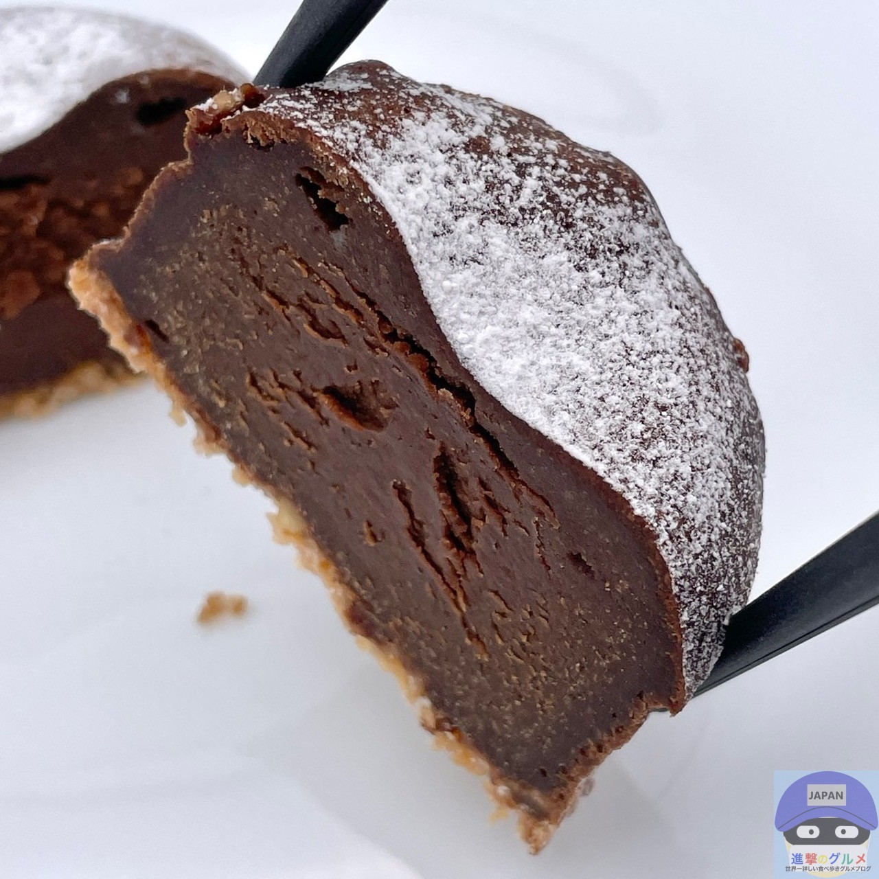 やや濃密な歯触りで濃いめのチョコの味わい、濃厚さがあって甘さ控えめ、コクやほろ苦さを感じます。