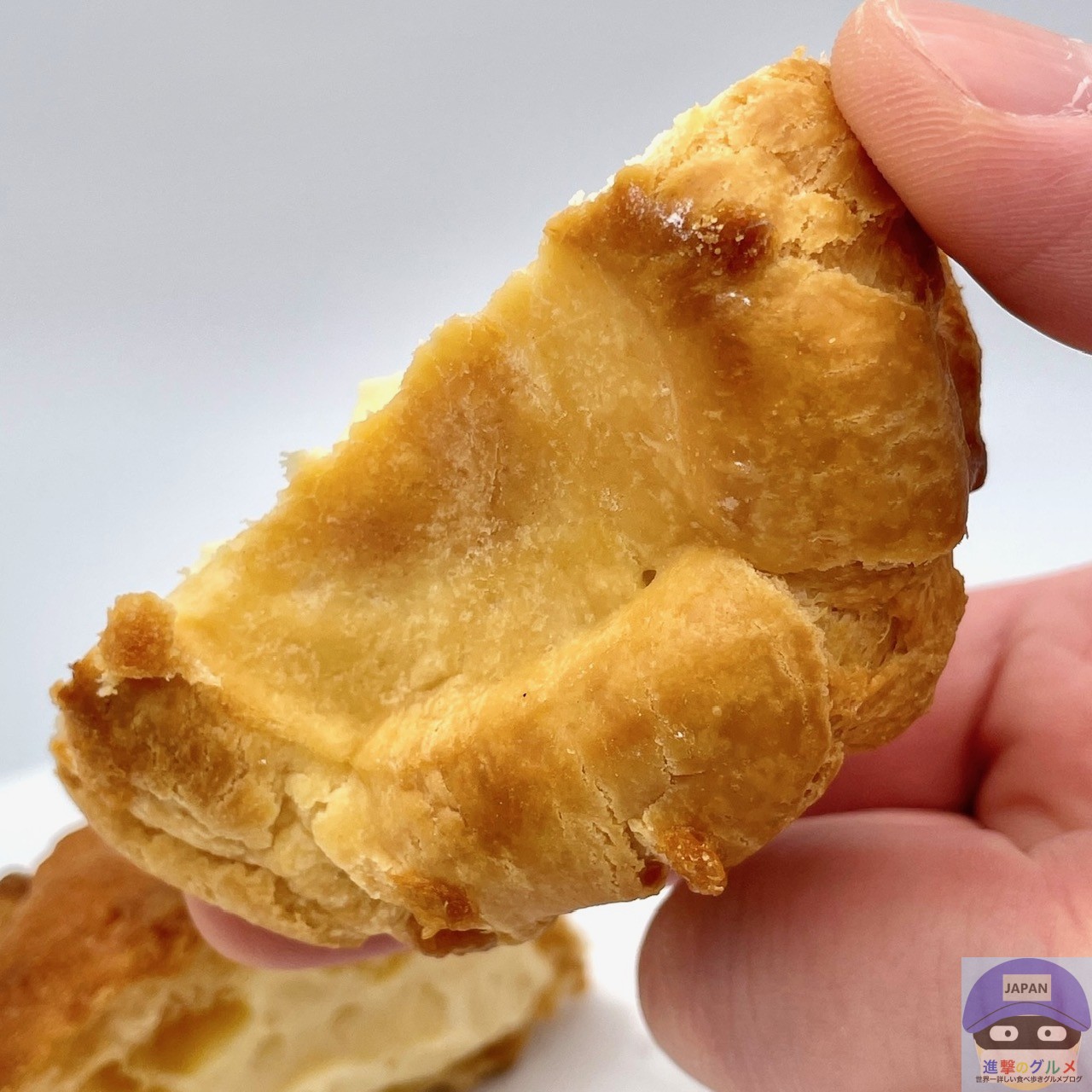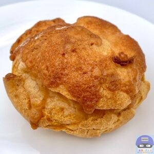 シュー生地の上側がザクッと食感で香ばしく、ハニーバターがじんわりとしみて、はちみつのやさしい甘みとバターの風味を少し感じます。