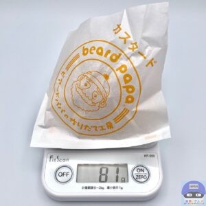 重さをはかると、包装紙を含めて81gでした。