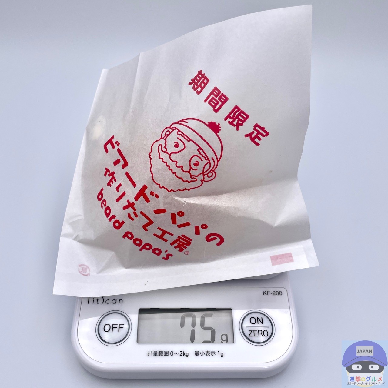重さをはかると、包装紙を含めて75gでした。