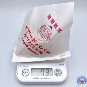 重さをはかると、包装紙を含めて73gでした。