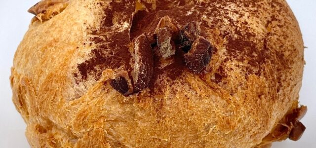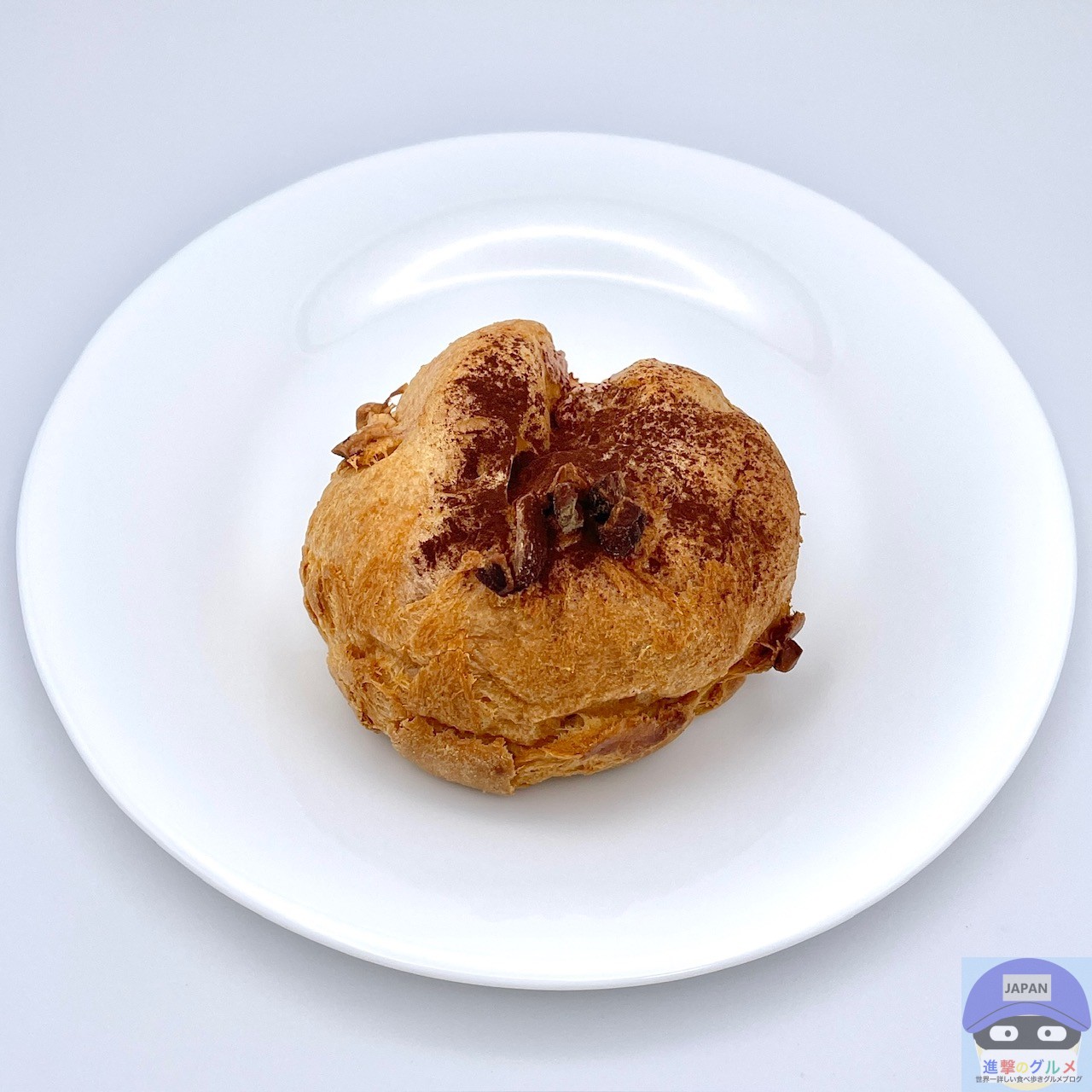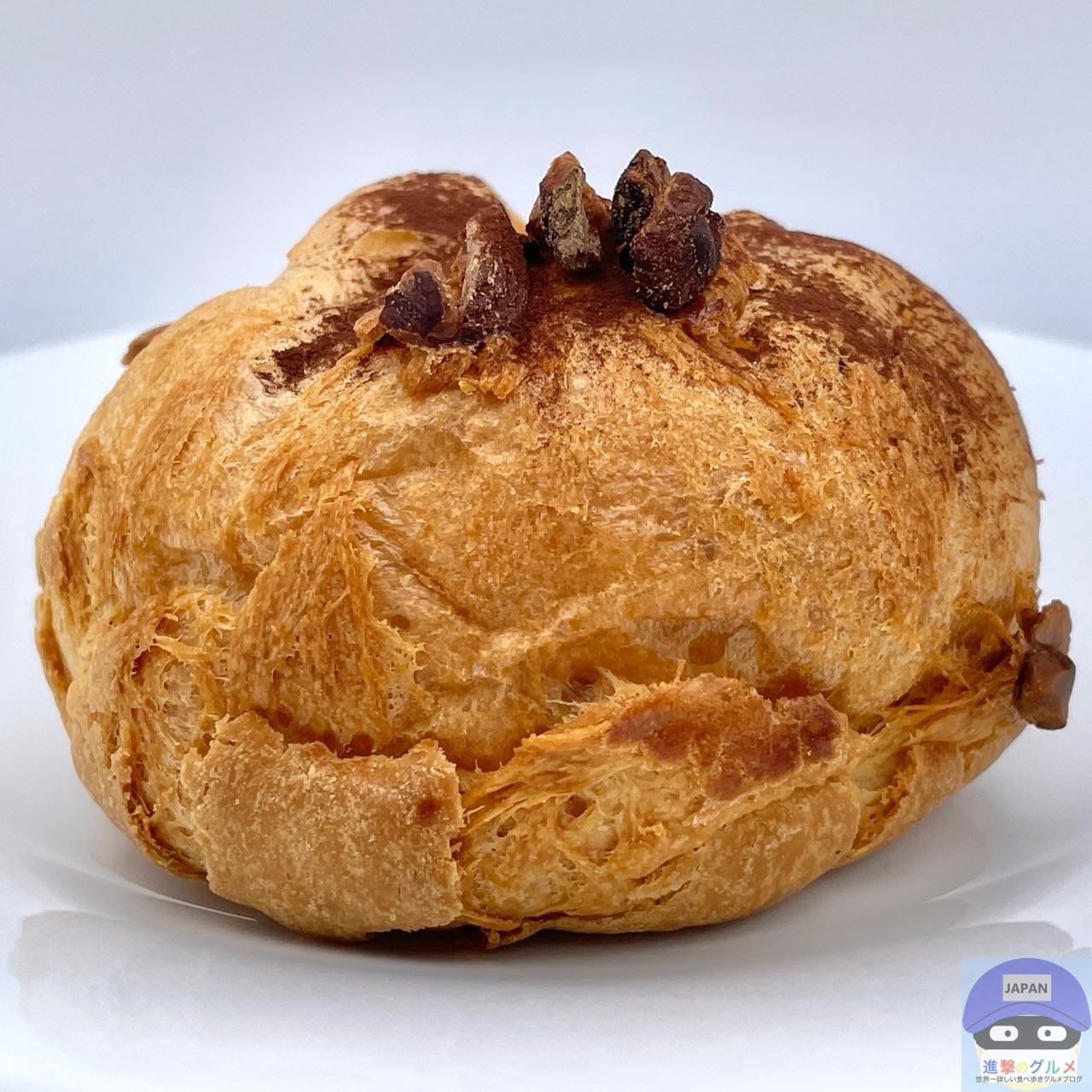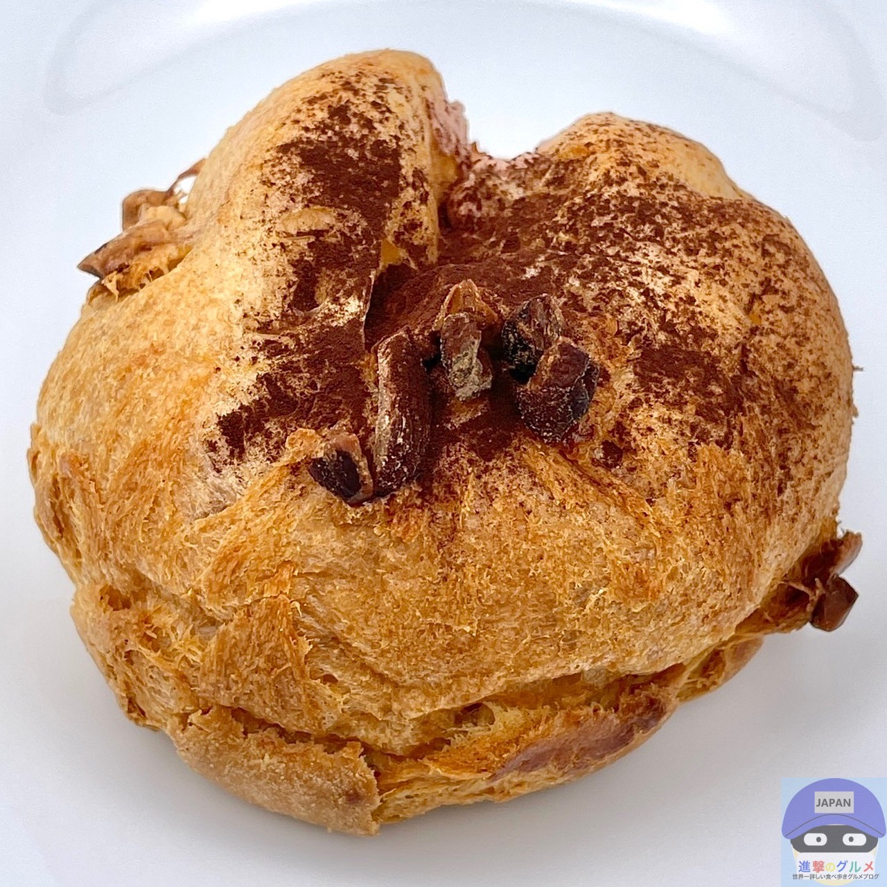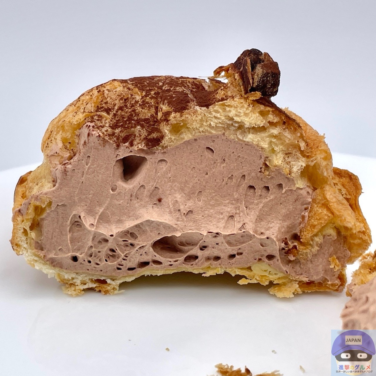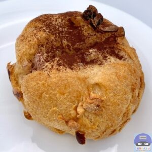 表面サクッとパイシュー生地の味わい、少しなめらかな特製クリームのカカオのコクと香りを感じ、アーモンドのカリッと食感と香ばしさがアクセントです。