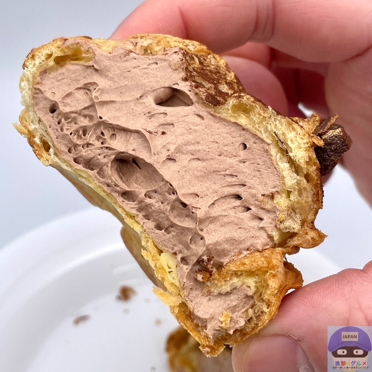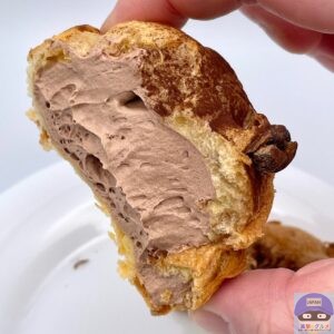 パイシュー生地の中に、チョコカスタードとホイップクリームを合わせた特製クリームが詰まっています。