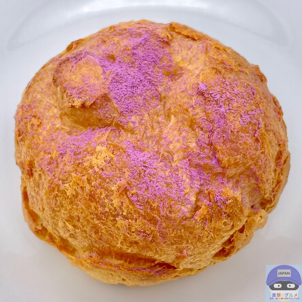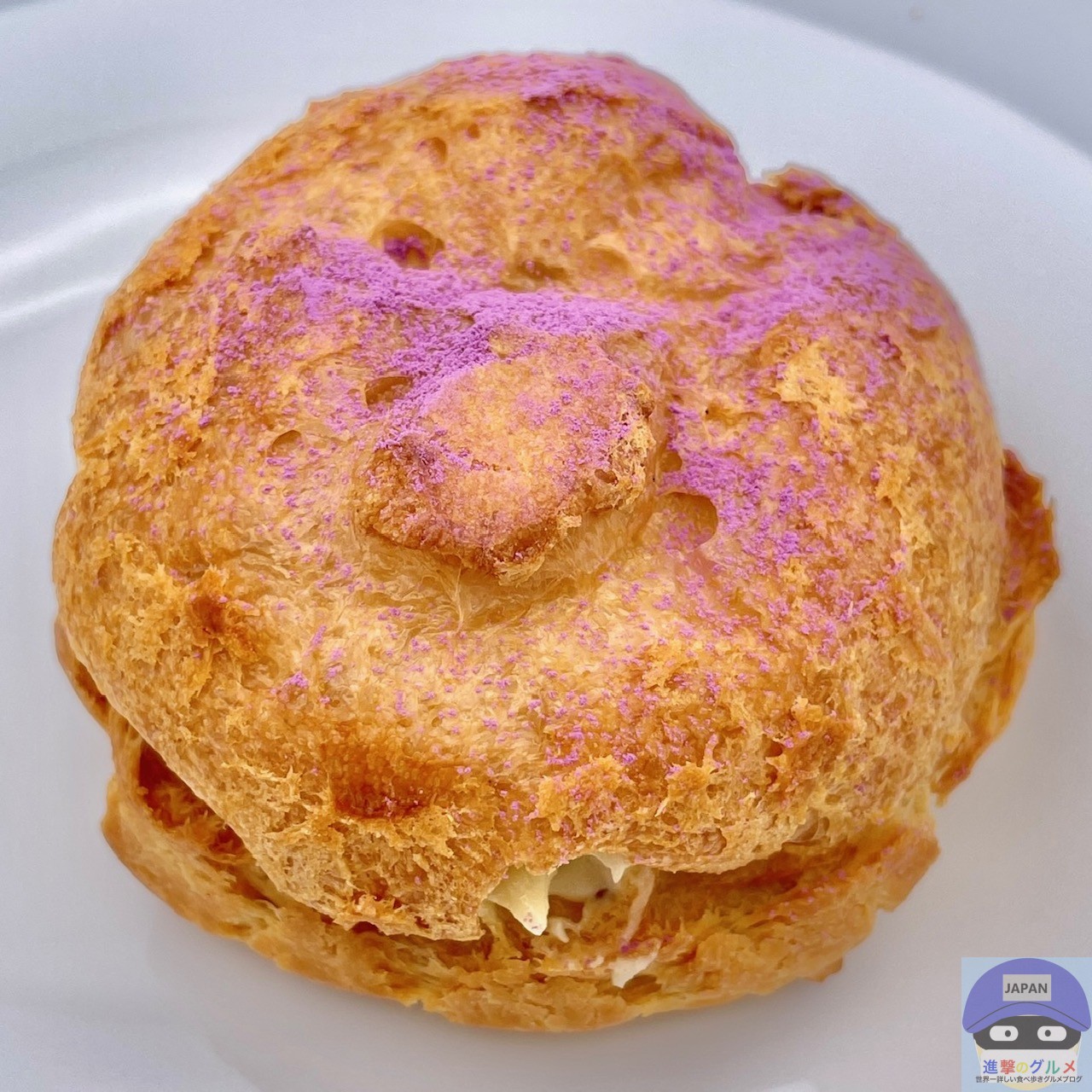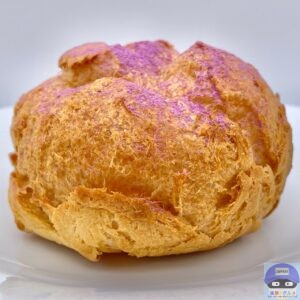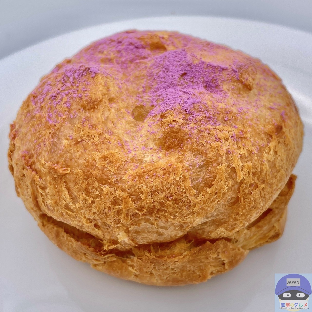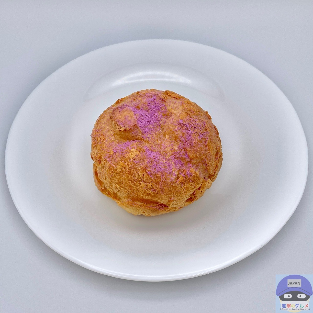 パイシュー生地に紫芋パウダーをかけた、シンプルな見た目のシュークリームです。