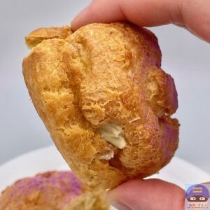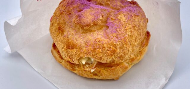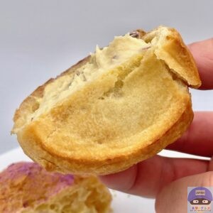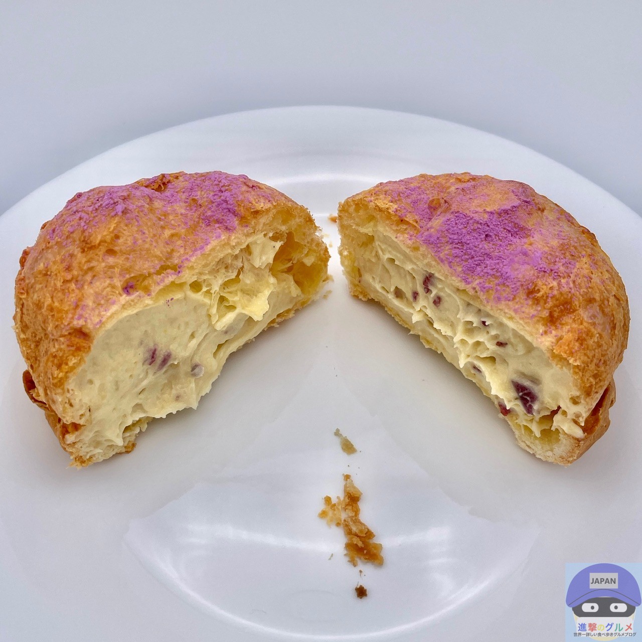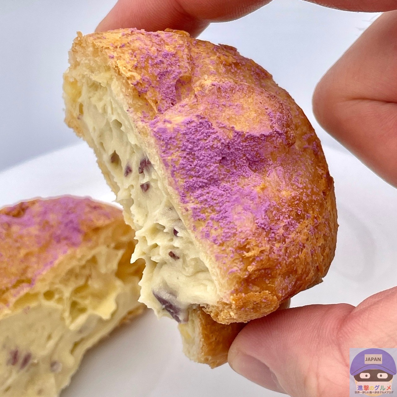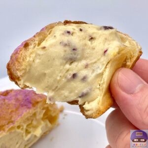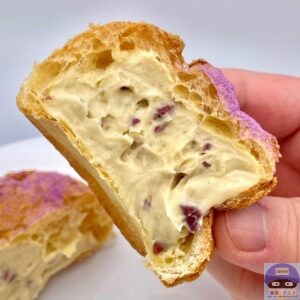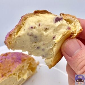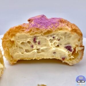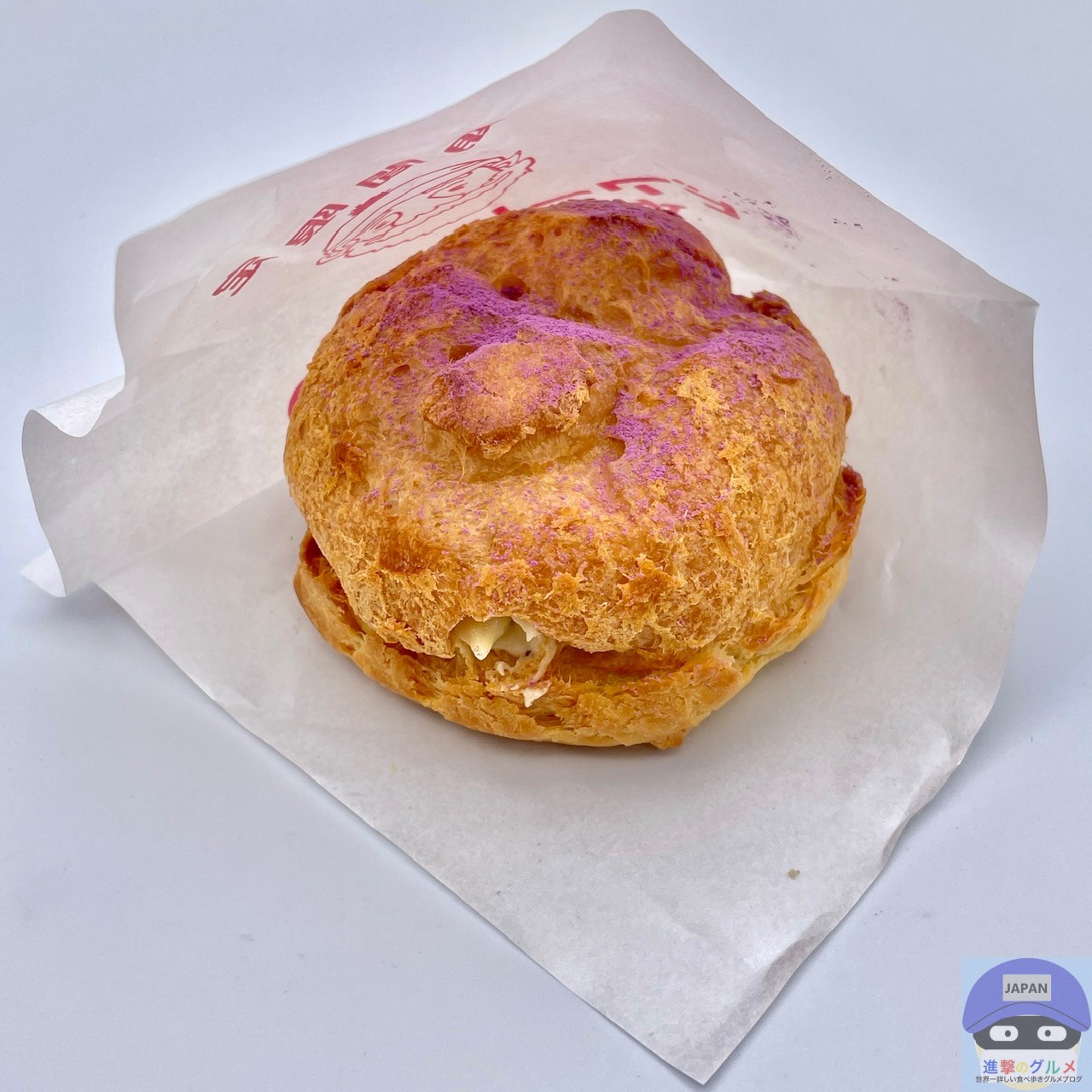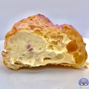 パイシュー生地に紫芋パウダーをかけた、シンプルな見た目のシュークリームです。