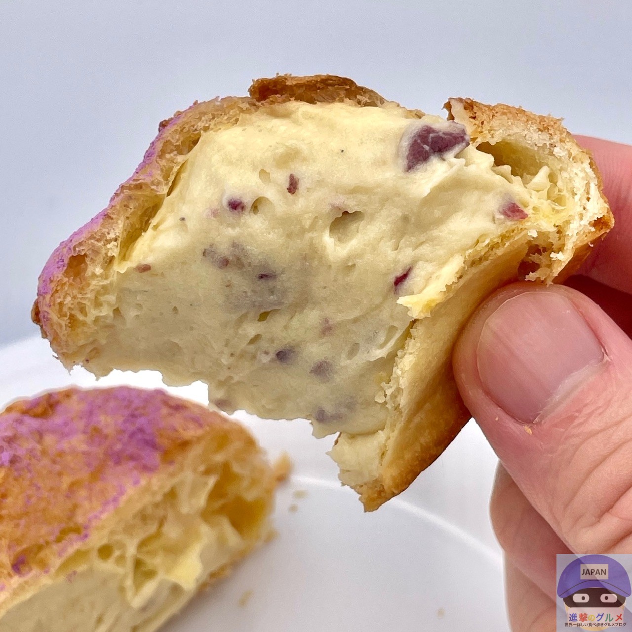 薄めのシュー生地がサクッと香ばしく、なめらかさとほくほく感のある濃厚クリームは、なると金時の素材感と焼き芋の風味よい甘みがたまりません。