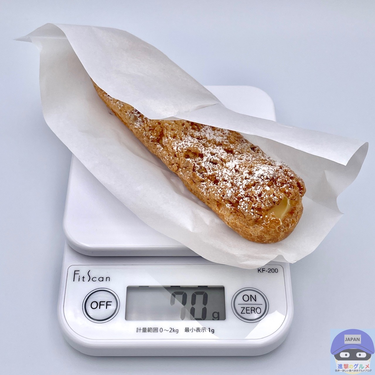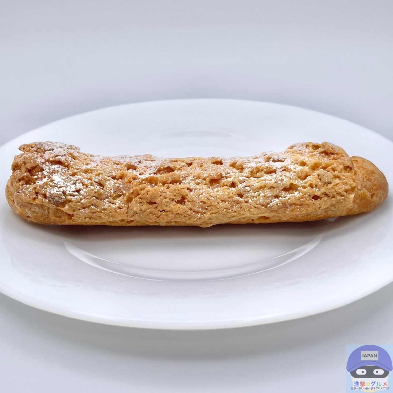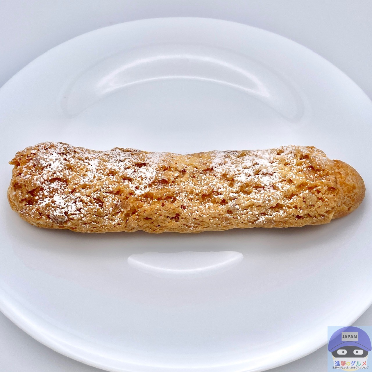 砕いたカシューナッツとアーモンドを表面に混ぜ込んだスティック状のシュー生地に特製カスタードクリームを詰めた、長細いシュークリームです。