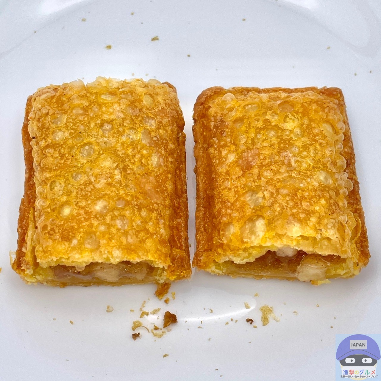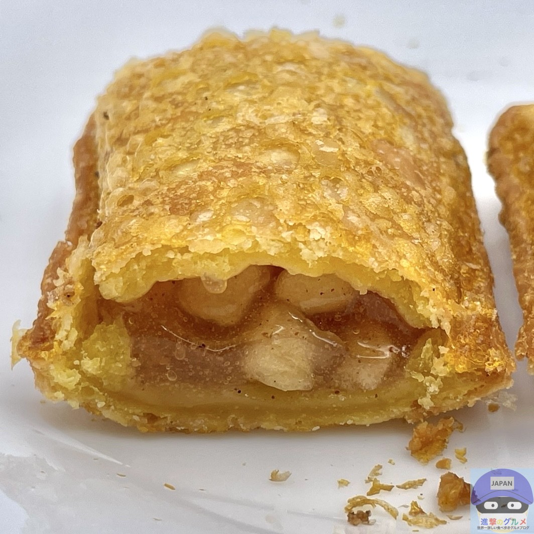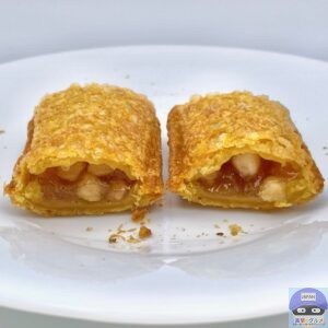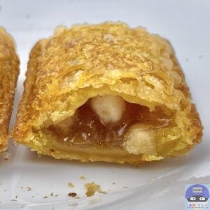パリッとサクサク食感で香ばしく、とろりとしたアップルフィリングのややジューシーな味わいが広がります。
