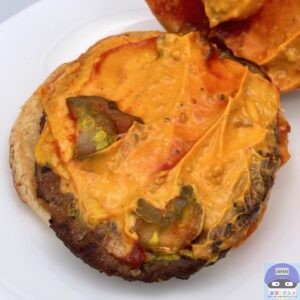 にんにく強めの刺激的な辛口チーズバーガーです。