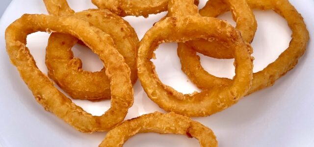 店舗へ向かい、定番メニュー「オニオンリング(350円)」を注文しました。