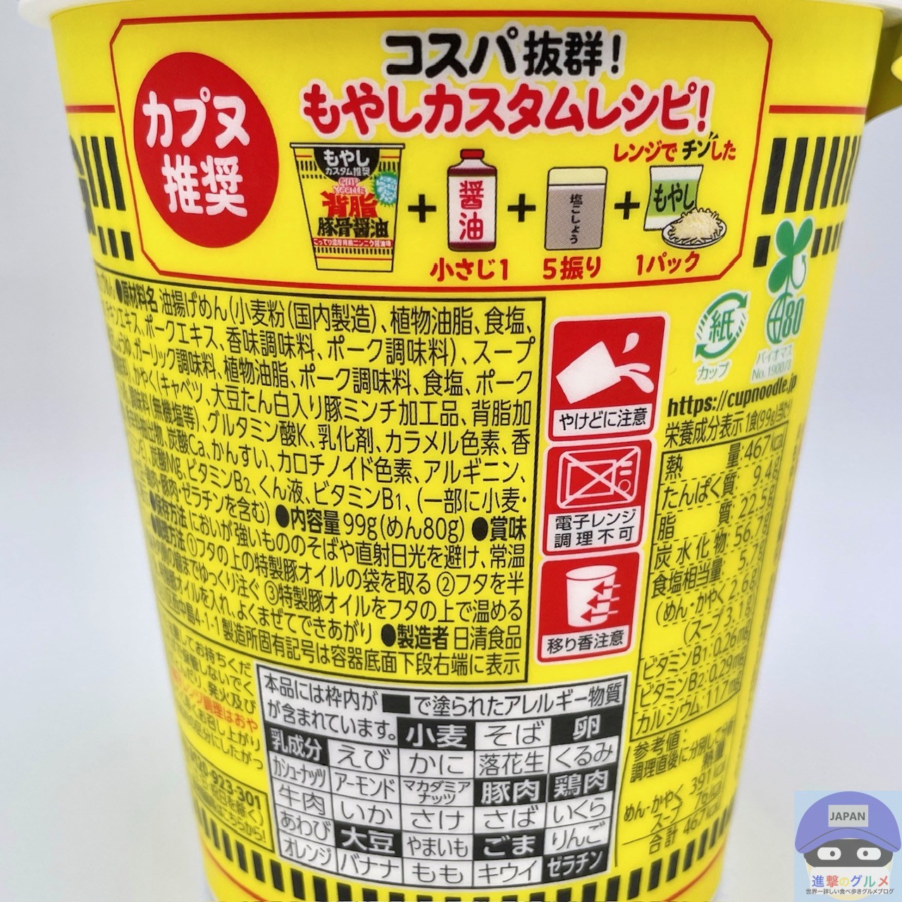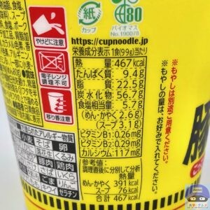 内容量は99g(めん80g)、カロリーは467kcalです。