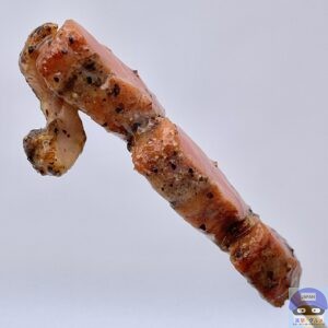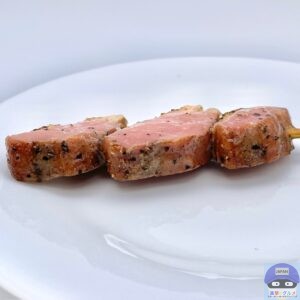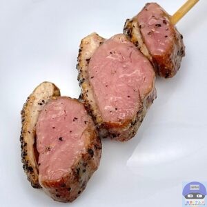あい鴨のロース(むね肉)をガーリックとペッパーをきかせて、りんごチップで燻製して仕上げた、ジューシーなあい鴨肉串です。