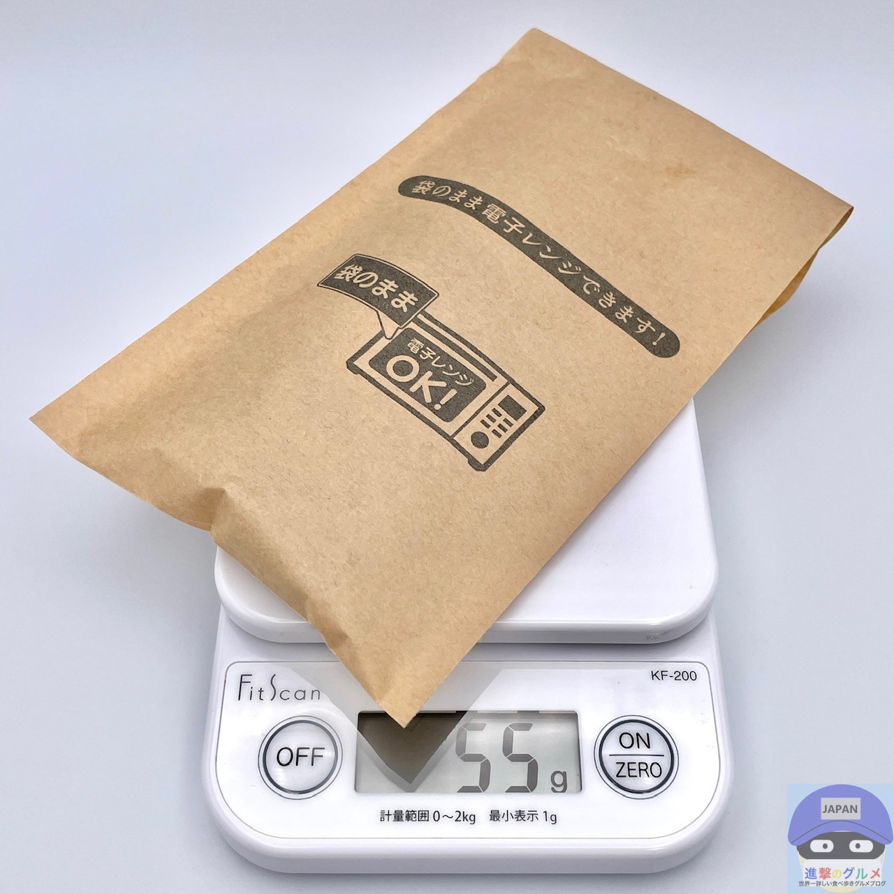 カロリーは99.1kcal、重さは包装を含めて55gです。