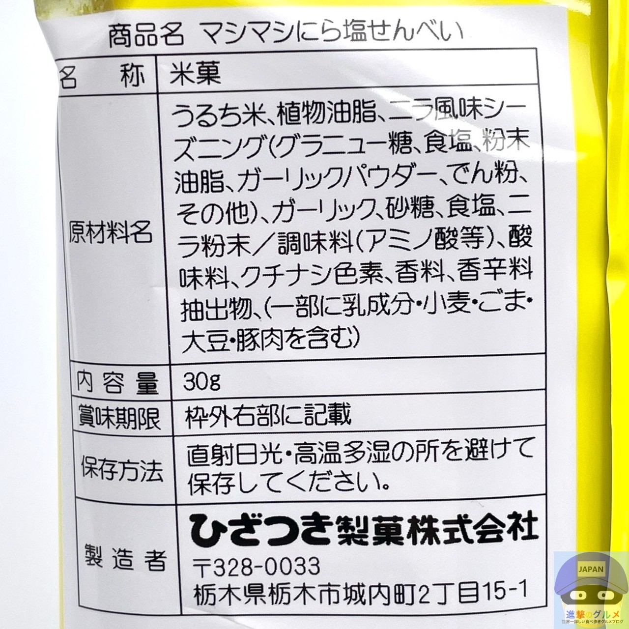 今回は、ファミリーマートの新商品「ひざつき マシマシにら塩せんべい」を世界一詳しく調査しました。