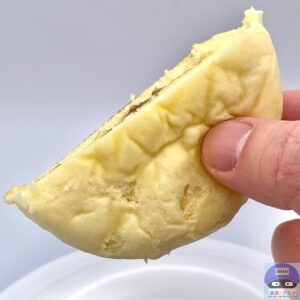 ふんわりしたやわらかい生地に、ソースがとろけてメイプルシロップのような甘みとバターの程よい風味を感じ、全体のくちどけは普通です。