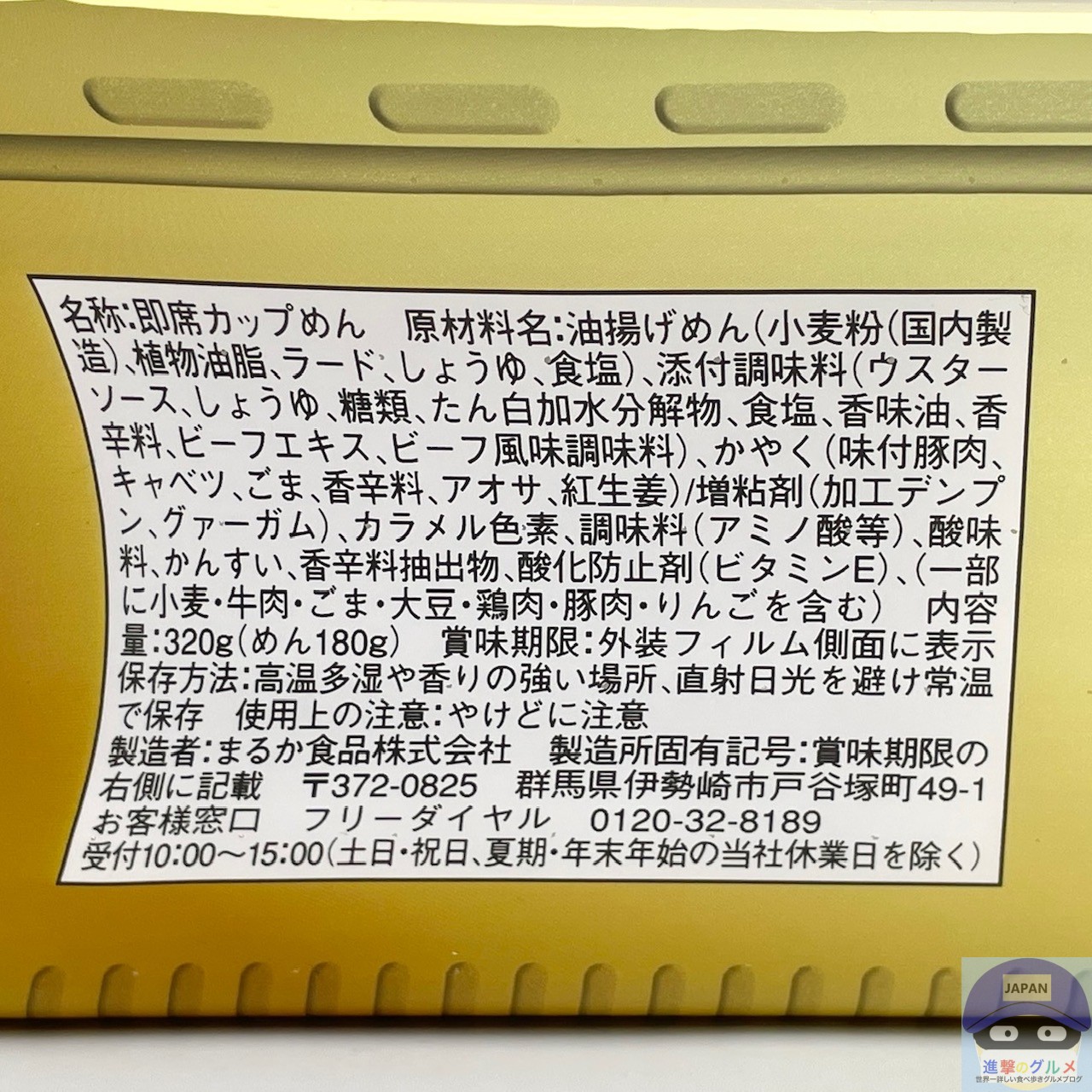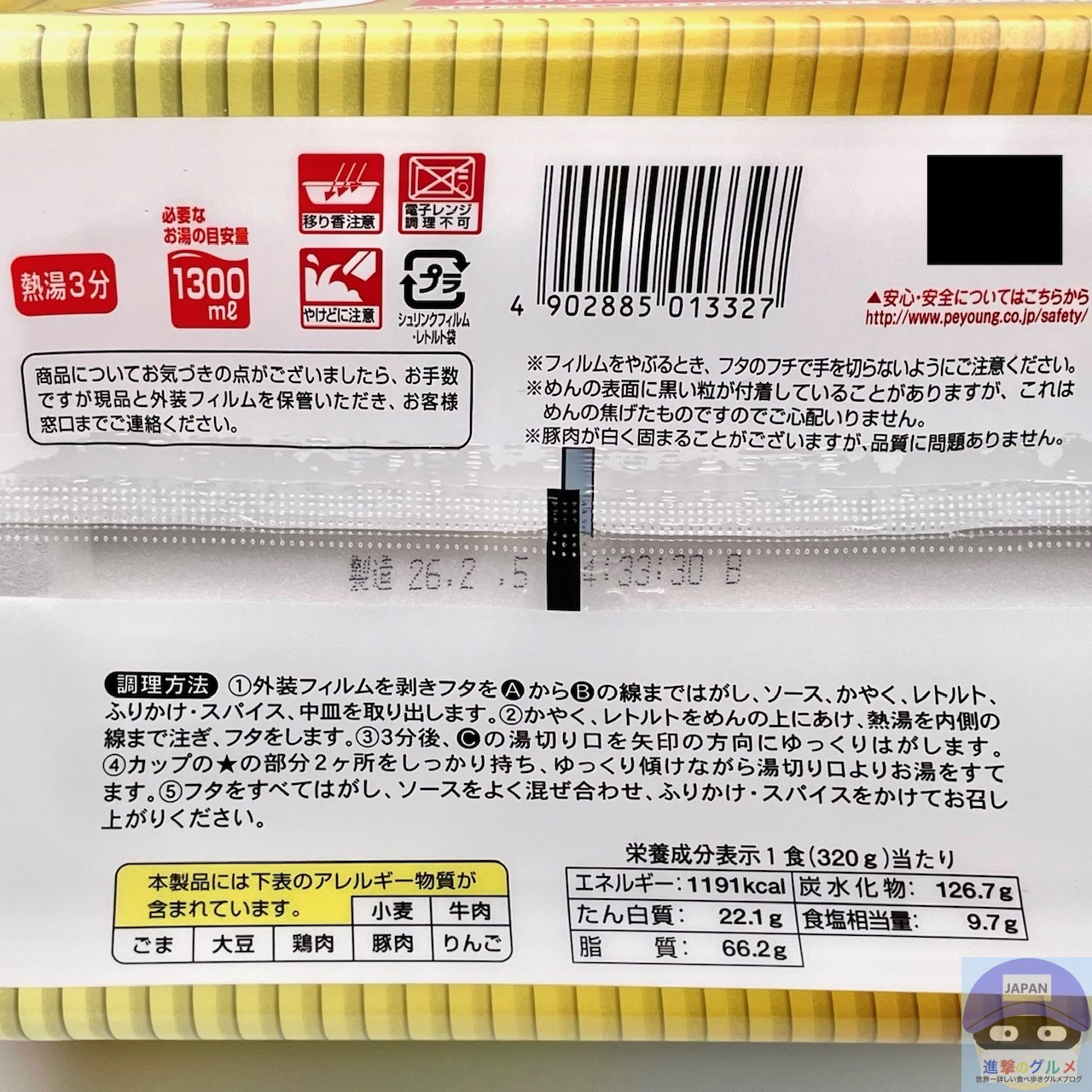 内容量は320g(めん180g)、カロリーは1191kcalです。