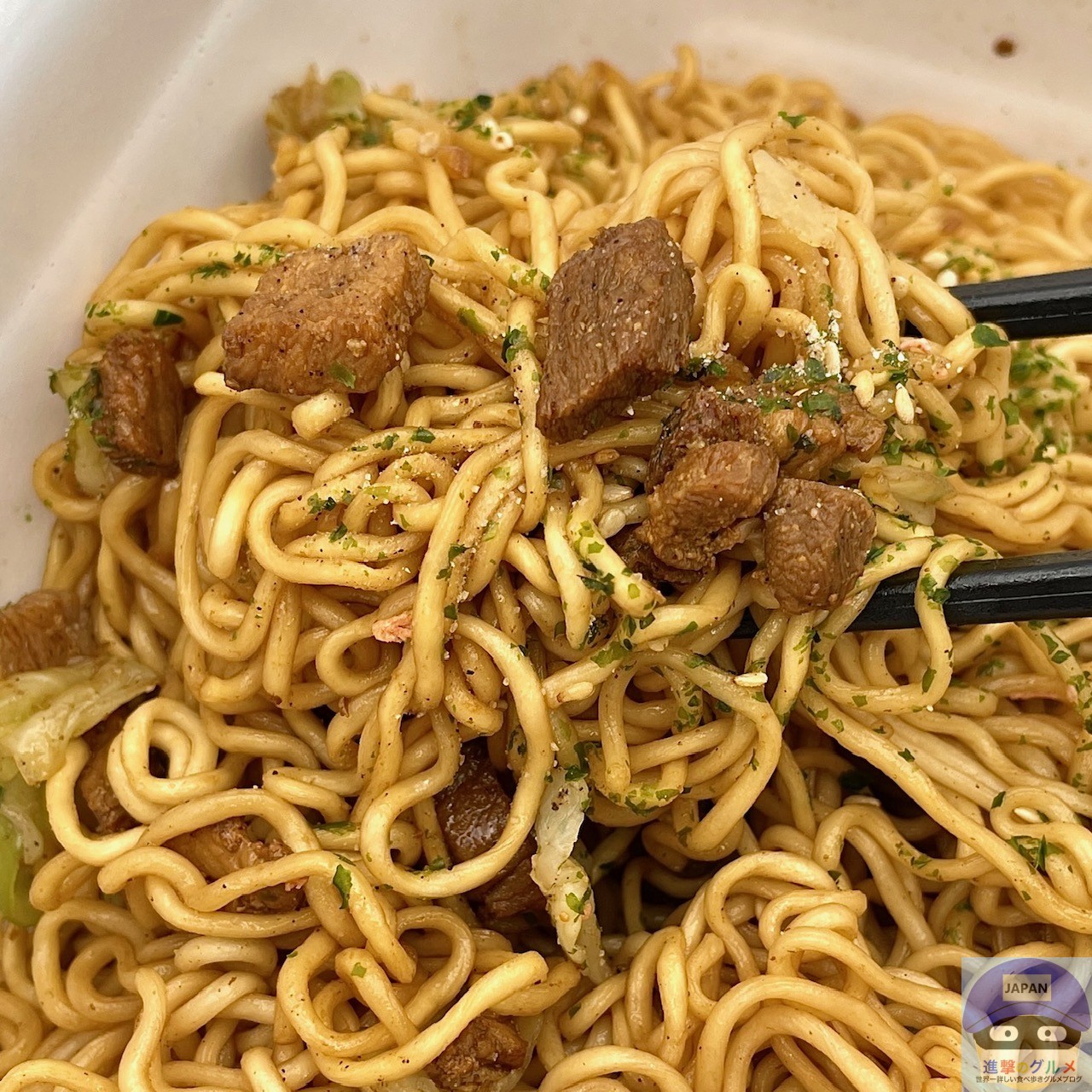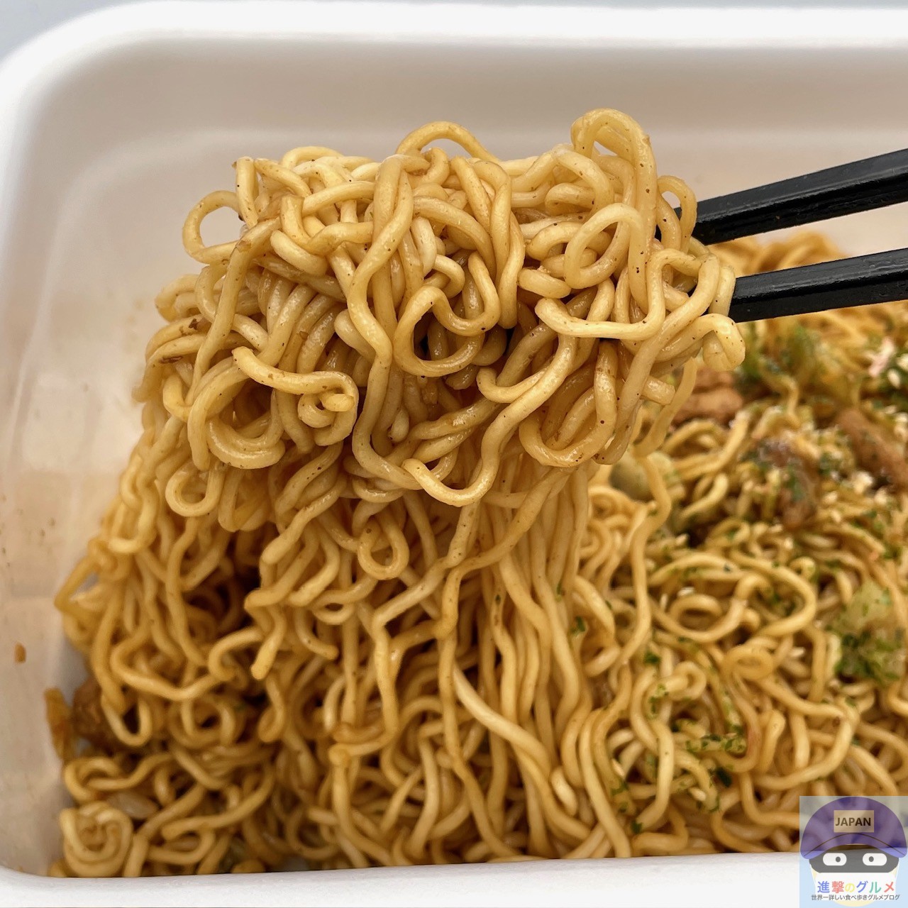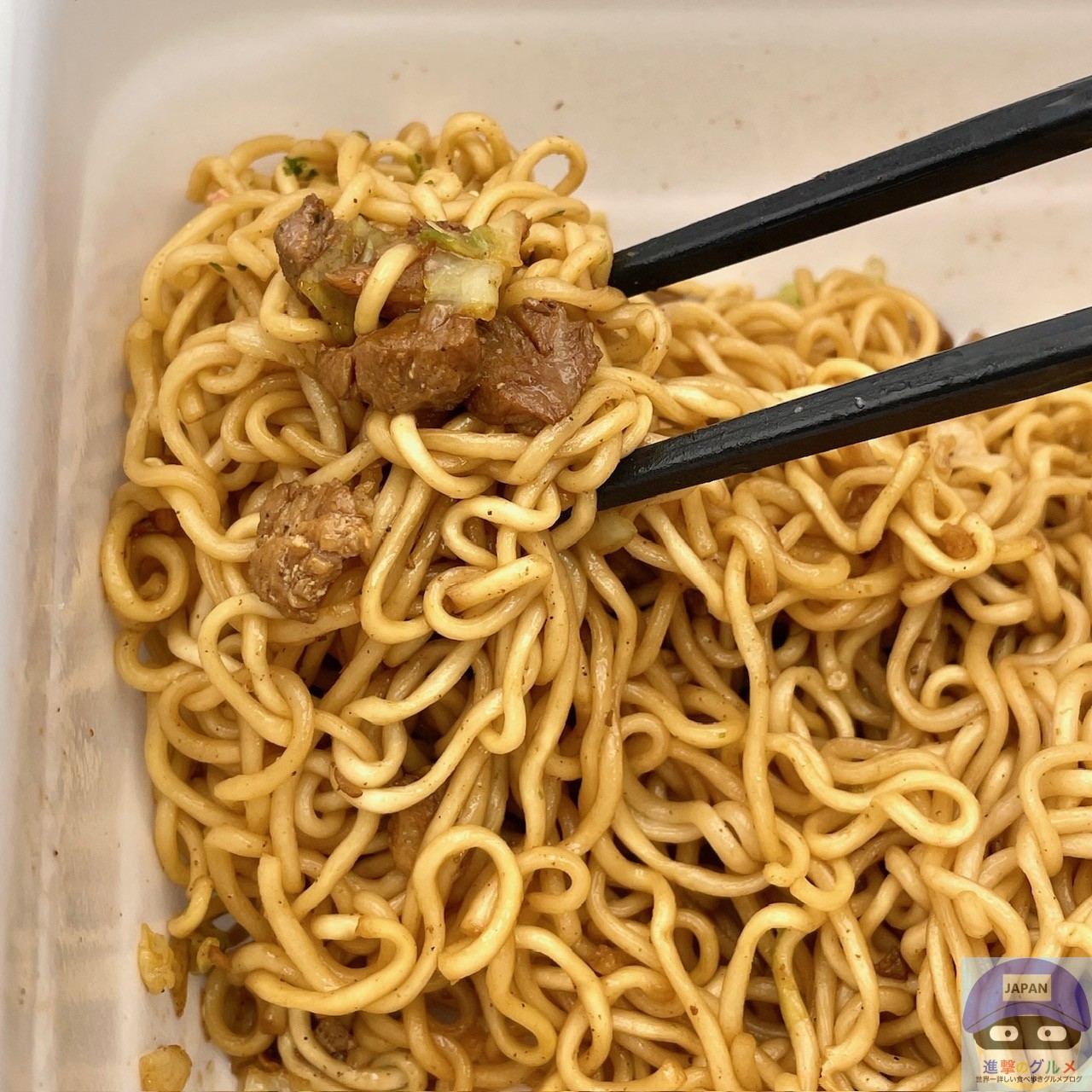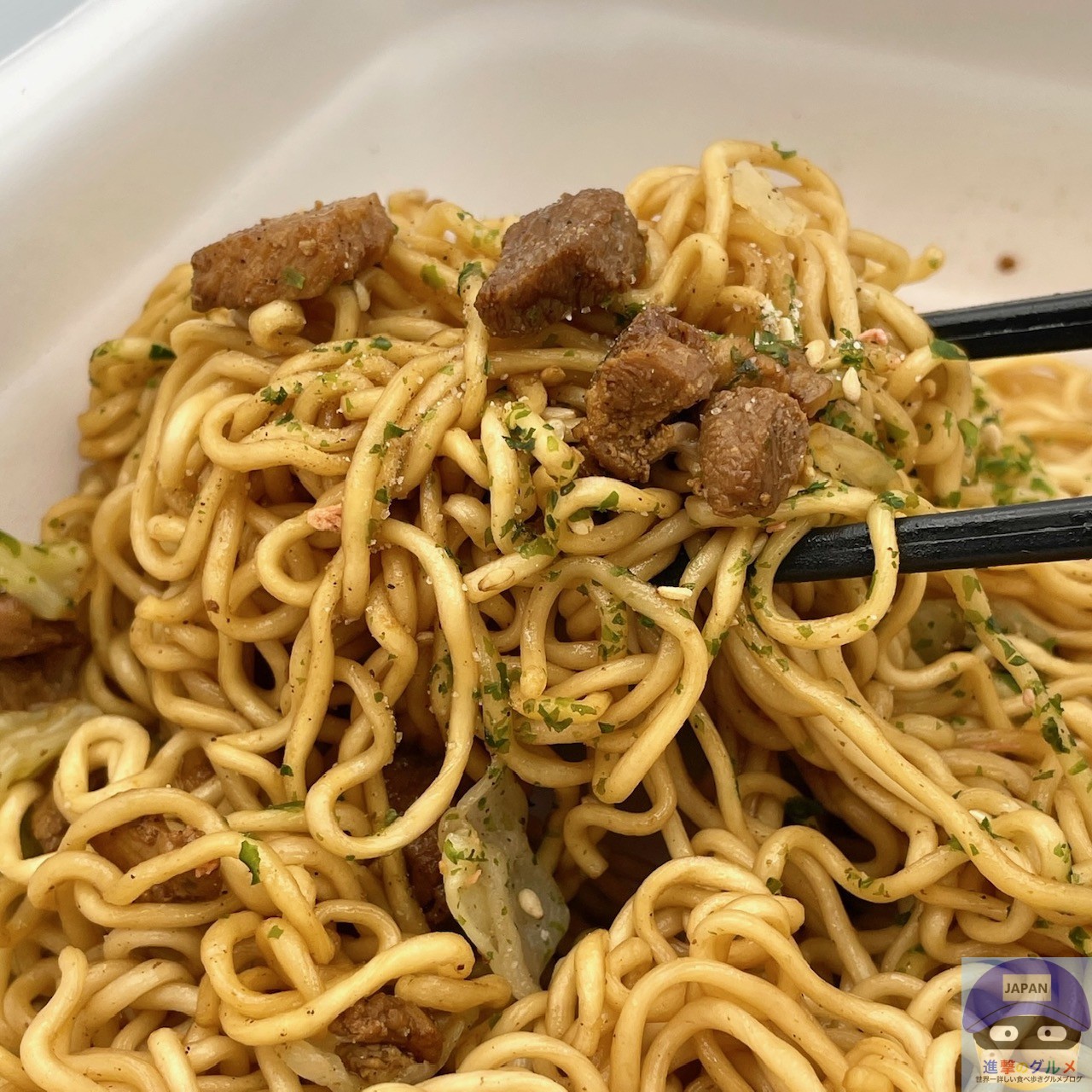 やわらかめのペヤングの馴染みの油揚げめんの味わいに、通常ペヤングよりも少し酸味のあるソースが絡んでいます。