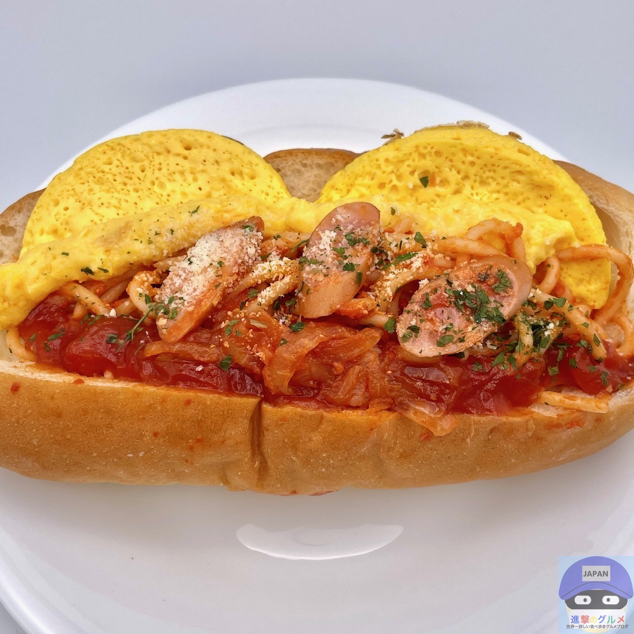 「大きなロールパン ナポリタン&オムレツ(398円)」
