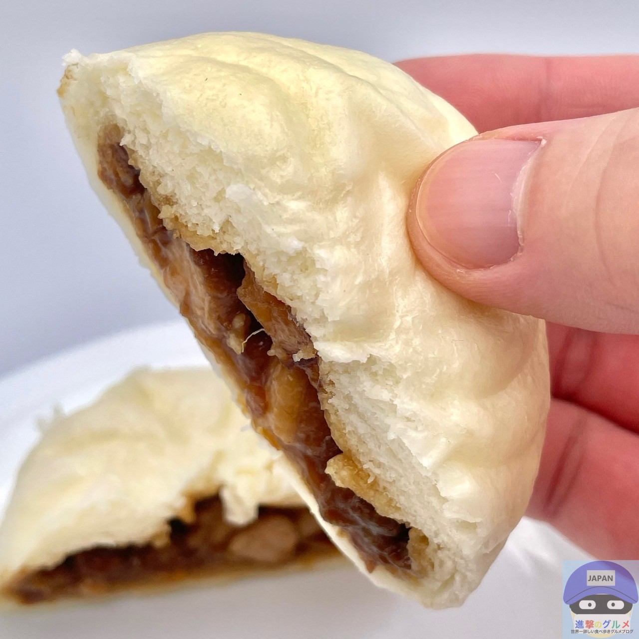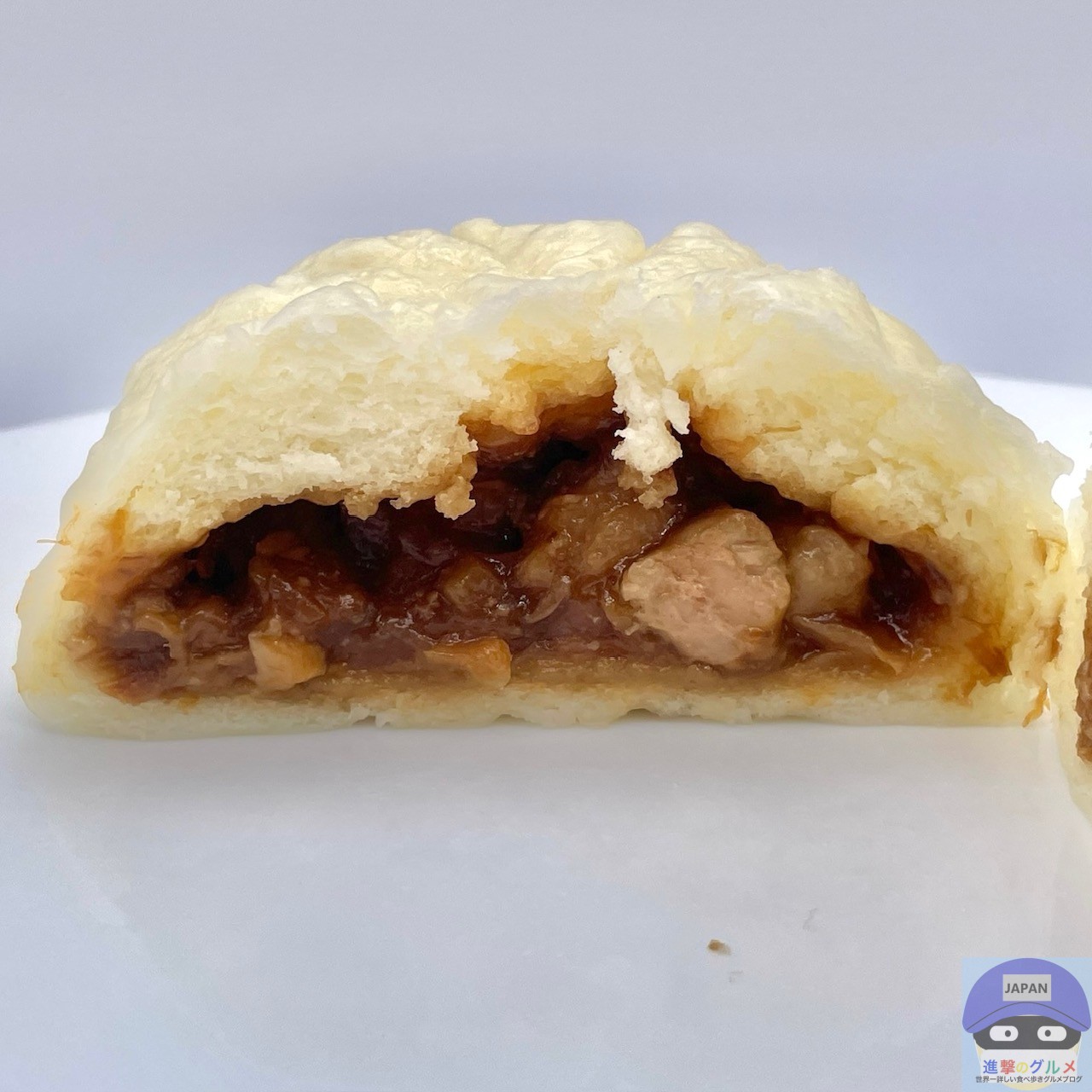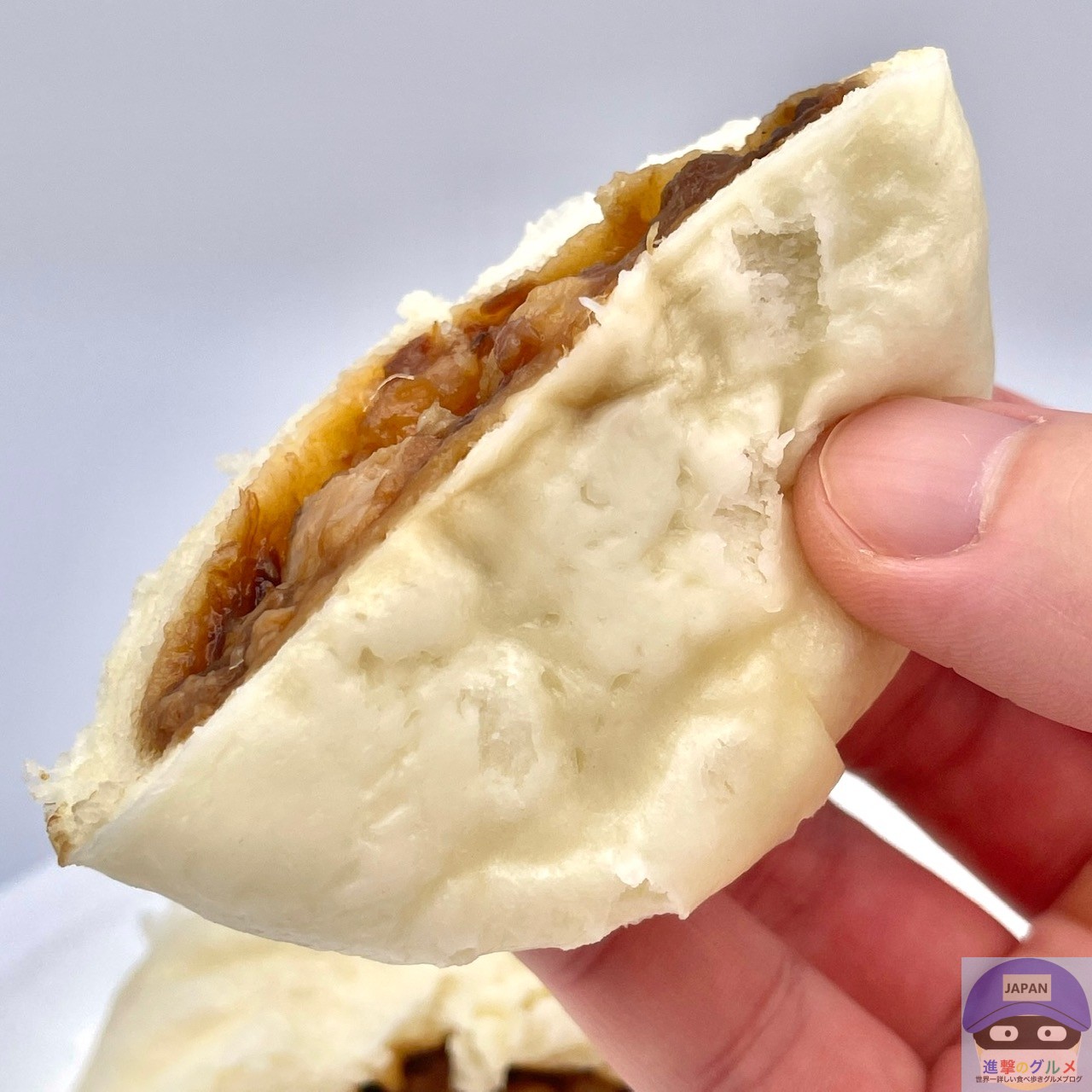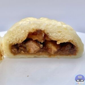 少しもっちりした中華まんの生地で、甘めに味付けされた角煮がほろりと崩れ、豚肉の旨みをしっかり感じる本格派です。