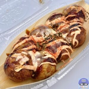 明太子とソースの良い香りが食欲をそそる、魅力的な見た目のたこ焼きです。
