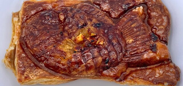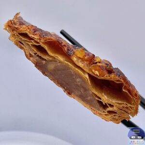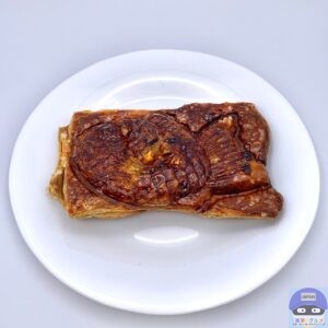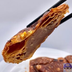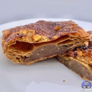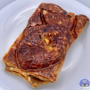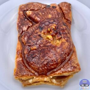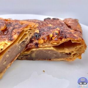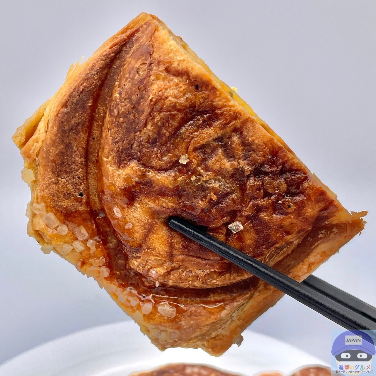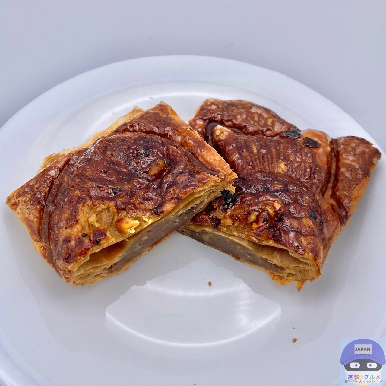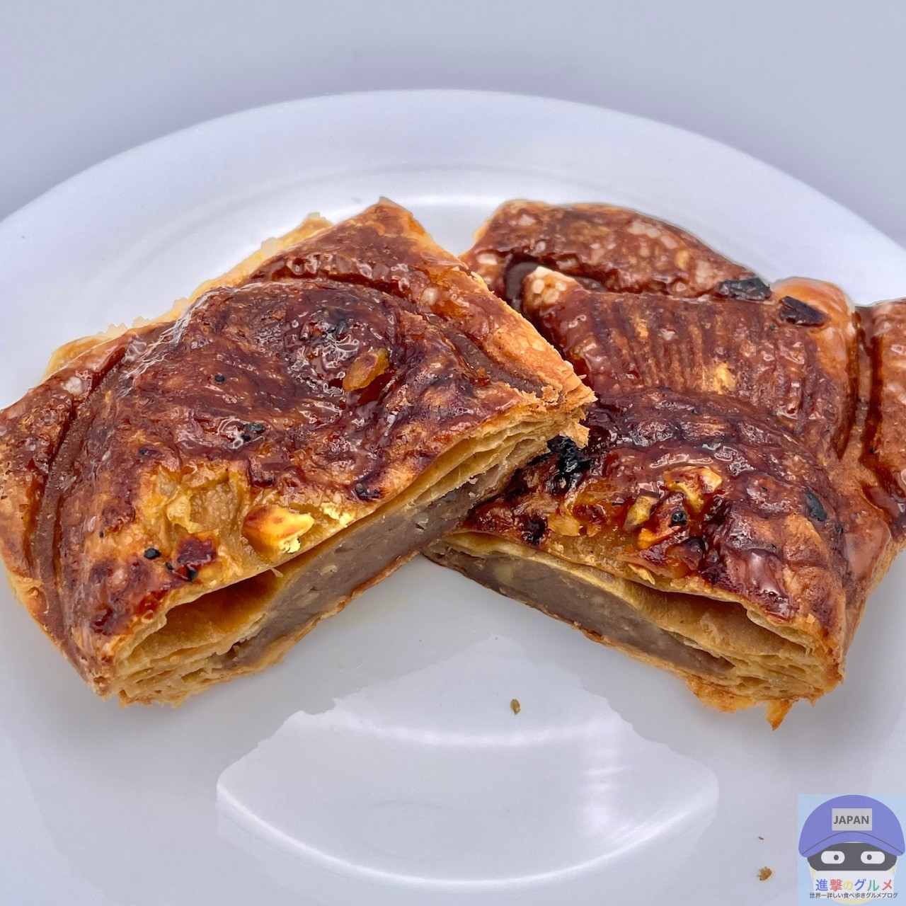 周りがサクサクッと少ししっとりした生地のパイ生地のような香ばしさ、カリッと食感のザラメ糖、岩塩で程よく甘じょっぱい蜜漬けの甘栗がクセになります。