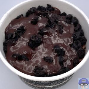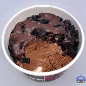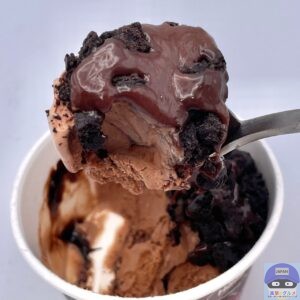 ソルティーチョコレートソースを混ぜ込んだチョコレートアイスクリームに、バターココアソースとチョコレートクッキーをトッピングしています。