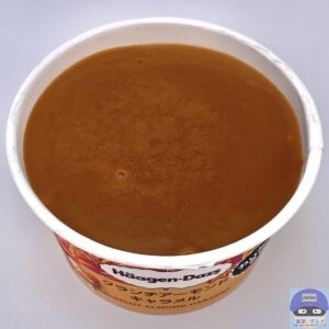 ホワイトチョコレートがけキャンディングアーモンドを混ぜ込んだキャラメルアイスクリームにキャラメルソースを重ねたカップアイスです。