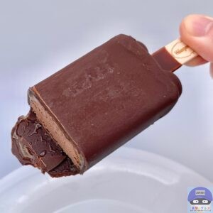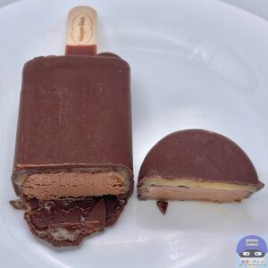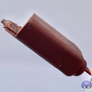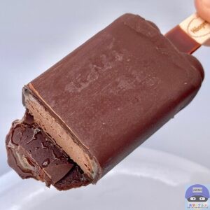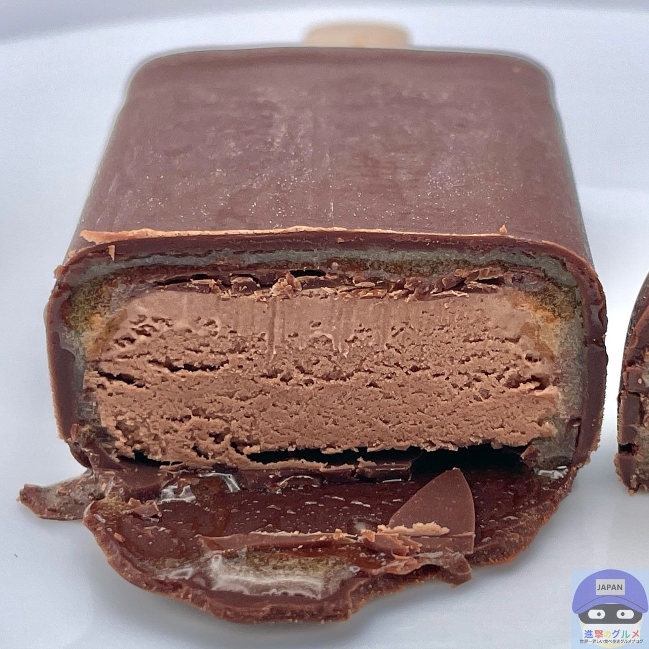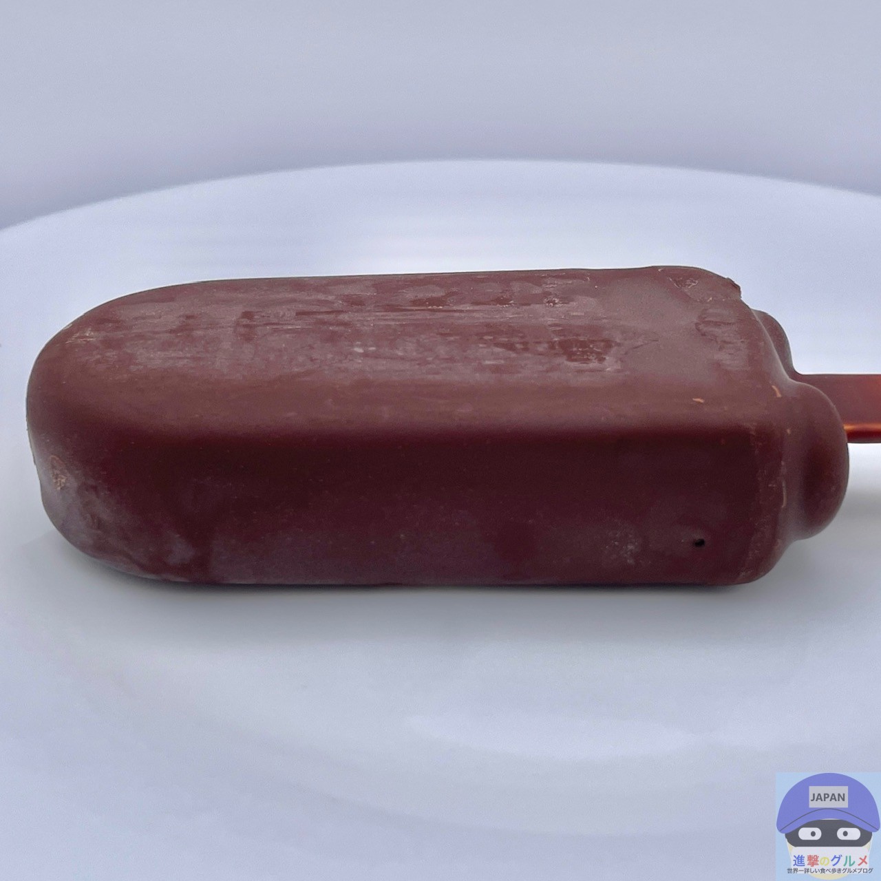 やや小ぶりで厚みのあるシンプルな見た目のチョコレートアイスバーです。